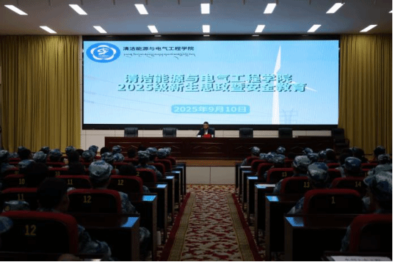 清洁能源与电气工程学院于9月10日19:00在一号行政楼开展了由党委副书记普布次仁主讲的思想政治与安全教育专题讲座,清电学院2025级全体新生参加。