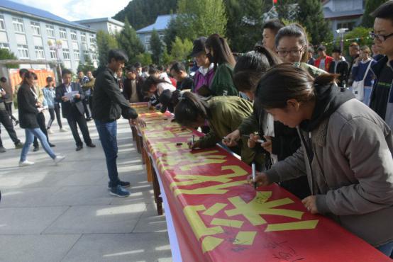 由动医第一党支部副书记茹一钊同学主持。首先,主持人发表开幕词,旦巴副书记发表讲话,他主要从以下四个方面讲到:一、我们要不忘初心跟党走;二、永远发扬老西藏精神;三、维护民族团结,维护社会稳定,坚决反对分裂;四、不忘党恩,铭记历史,珍惜现在的美好生活。然后,由旦巴副书记带领现场学生党员重温入党誓词,“我志愿加入中国共产党,拥护党的纲领,遵守党的章程……”学生党员的铿锵誓言表达了为党的事业奋斗毕生的坚定决心。最后,活动到了签字环节,各位党支部书记率先签字,学生党员随后依次签字,活动到此圆满结束。
