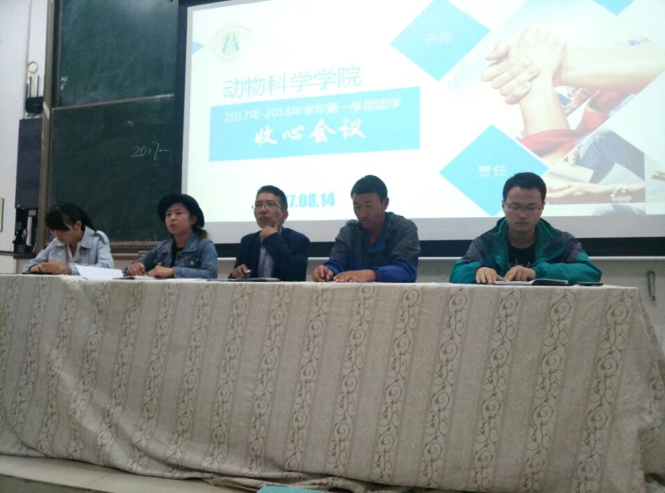 为了安排部署新学年教育教学工作,加强领导老师和学生干部的桥梁纽带关系,统一思想,确保新学期各项工作顺利推进,我院于2017年8月14日19:00在第一教学楼107教室召开了新学期团学收心会议。参加此次会议的人员有院党委副书记旦巴、学生科科长普旺堆、团总支书记姚梦婕、辅导员殷巧、靳亚杰以及团学全体成员。