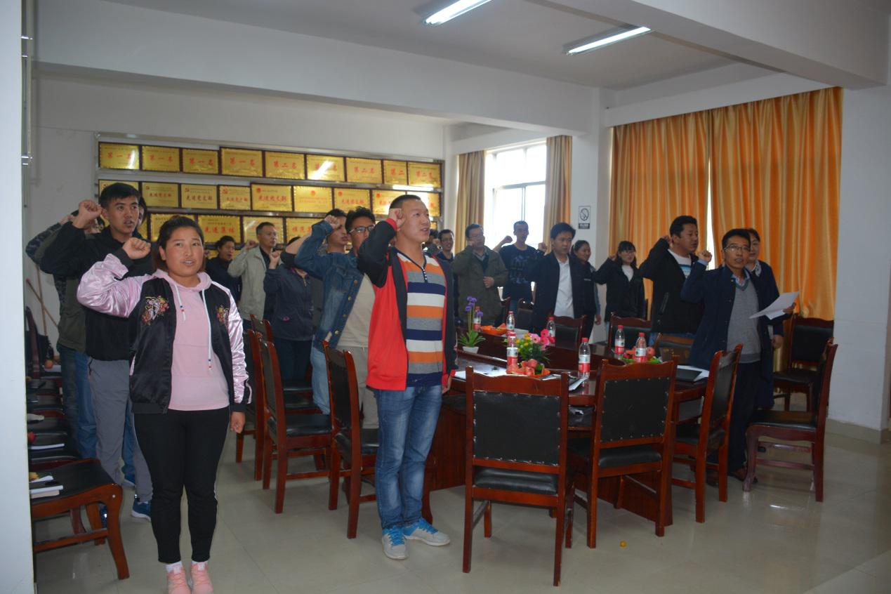 会议最后,由我院党委旦巴副书记带领全体参会党员在庄严的党旗下郑重地重温了入党誓词,短短十二句的入党誓词,字字千钧,既概括了我们党对党员的基本要求,也概括了党员对党组织的事业所应承担的政治责任,使我院党员干部的责任感和使命感有了极大的巩固和提升。