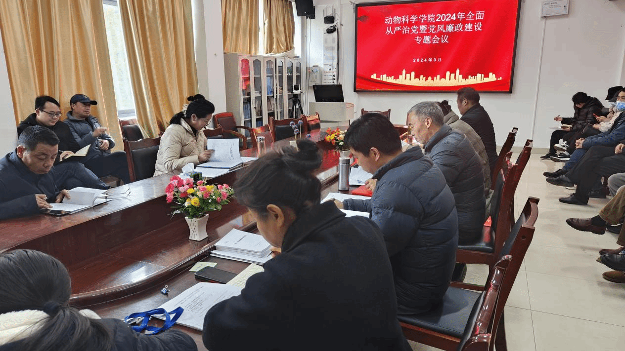 2024年3月15日下午,动物科学学院党委召开2024年全面从严治党暨党风廉政建设工作专题会议,深入学习贯彻中央及自治区纪委全会精神,安排下一步工作任务。会议由动物科学学院党委副书记刘锁珠主持,全体动物科学学院干部职工参加会议。