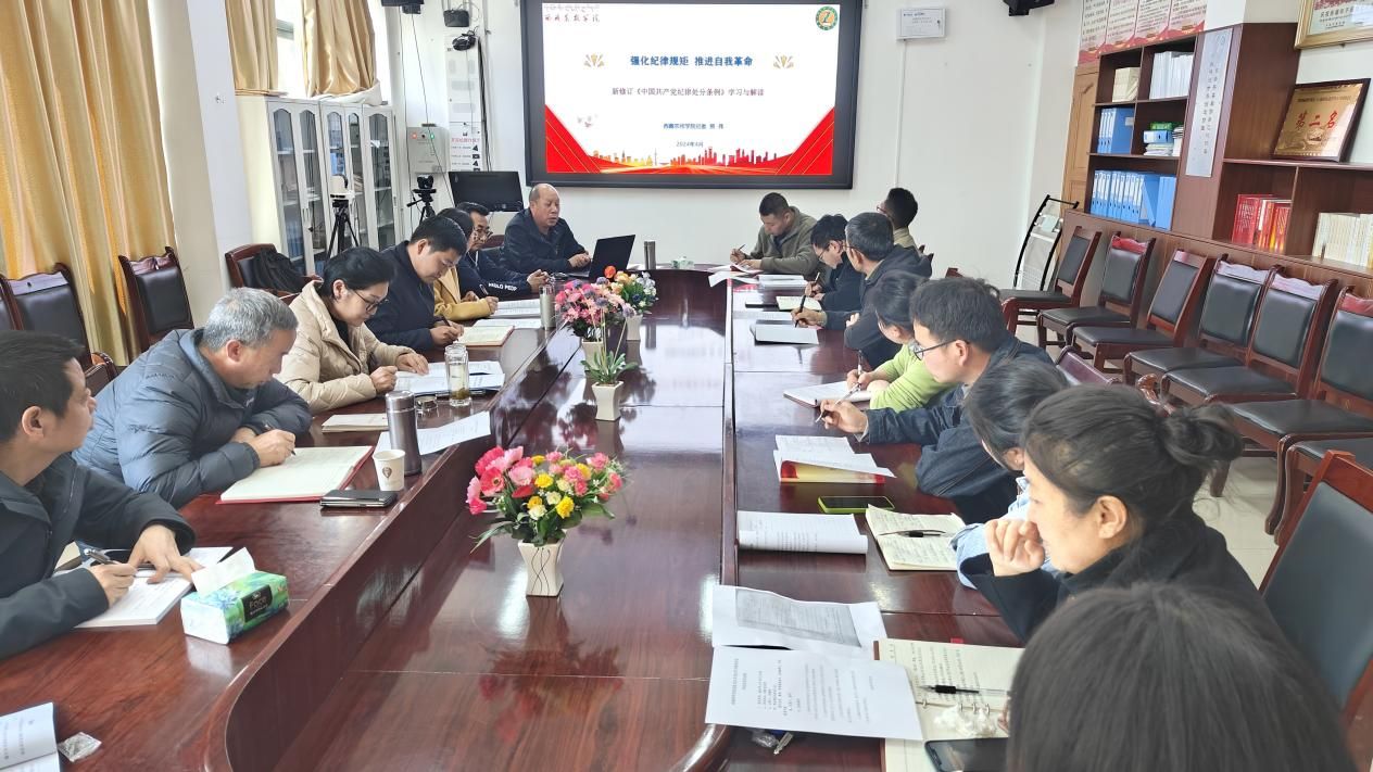 4月15日下午,我院召开党纪学习教育启动会,旨在全面深入学习和贯彻党纪学习教育相关文件精神,进一步提升全体党员的政治站位,确保党纪党规得到有效执行。会议由学院党委副书记刘锁珠主持,校纪委副书记熊伟作专题报告,强巴央宗校长发表了学习教育动员讲话。我院领导班子成员、师生党员代表20余人参加了本次会议。
