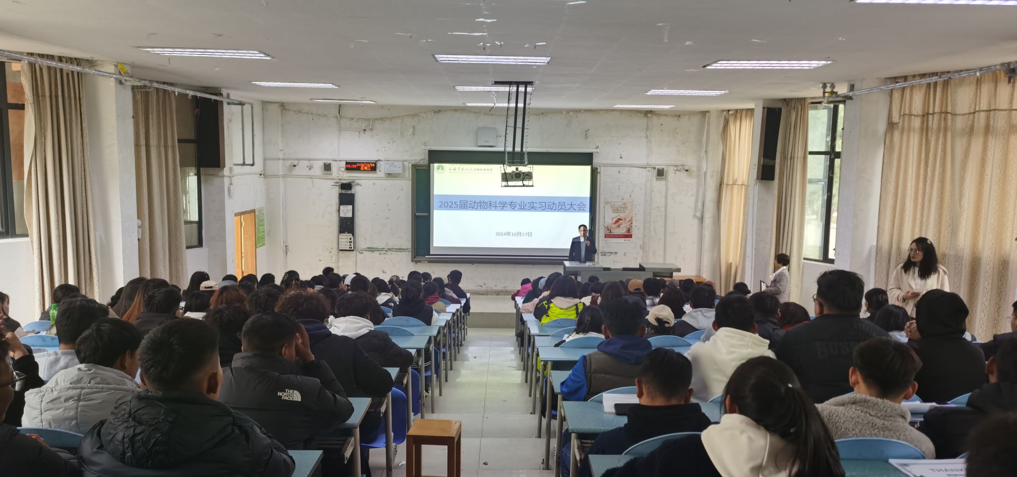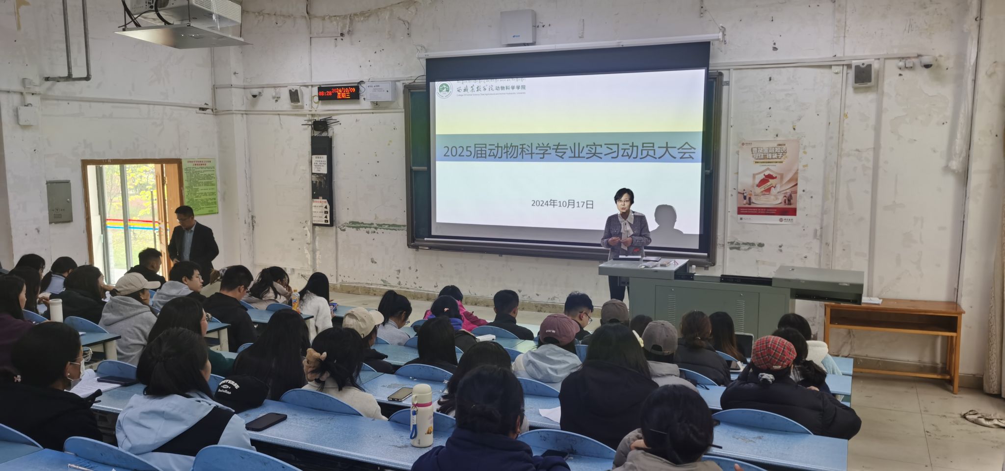 2024年10月17日,动物科学学院在第一教学楼1107教室召开了2025届动物科学专业实习动员大会。动物科学学院党委副书记石徐、副院长徐业芬出席会议,2025届动物科学专业全体毕业生、班主任、辅导员参加了会议。