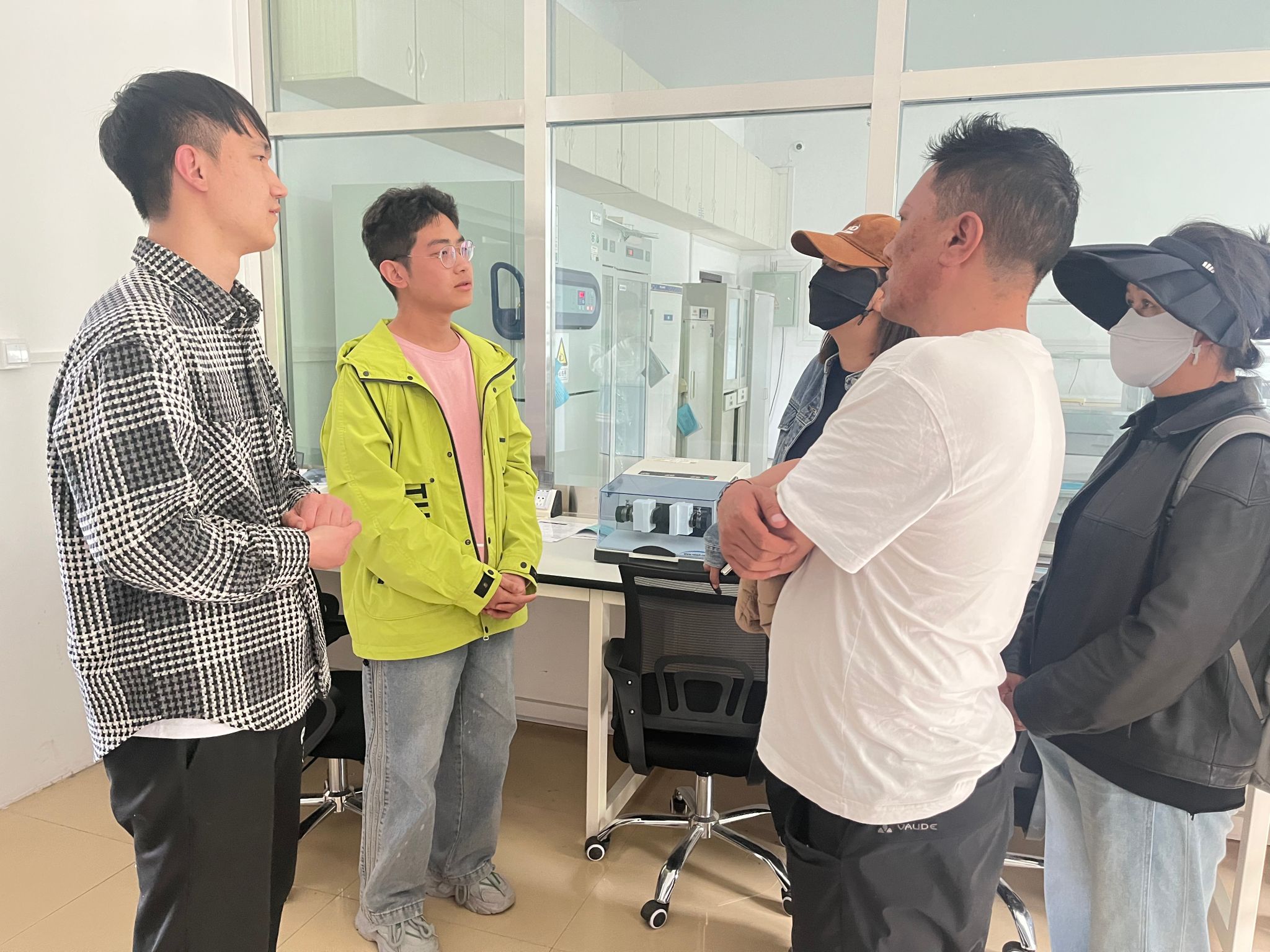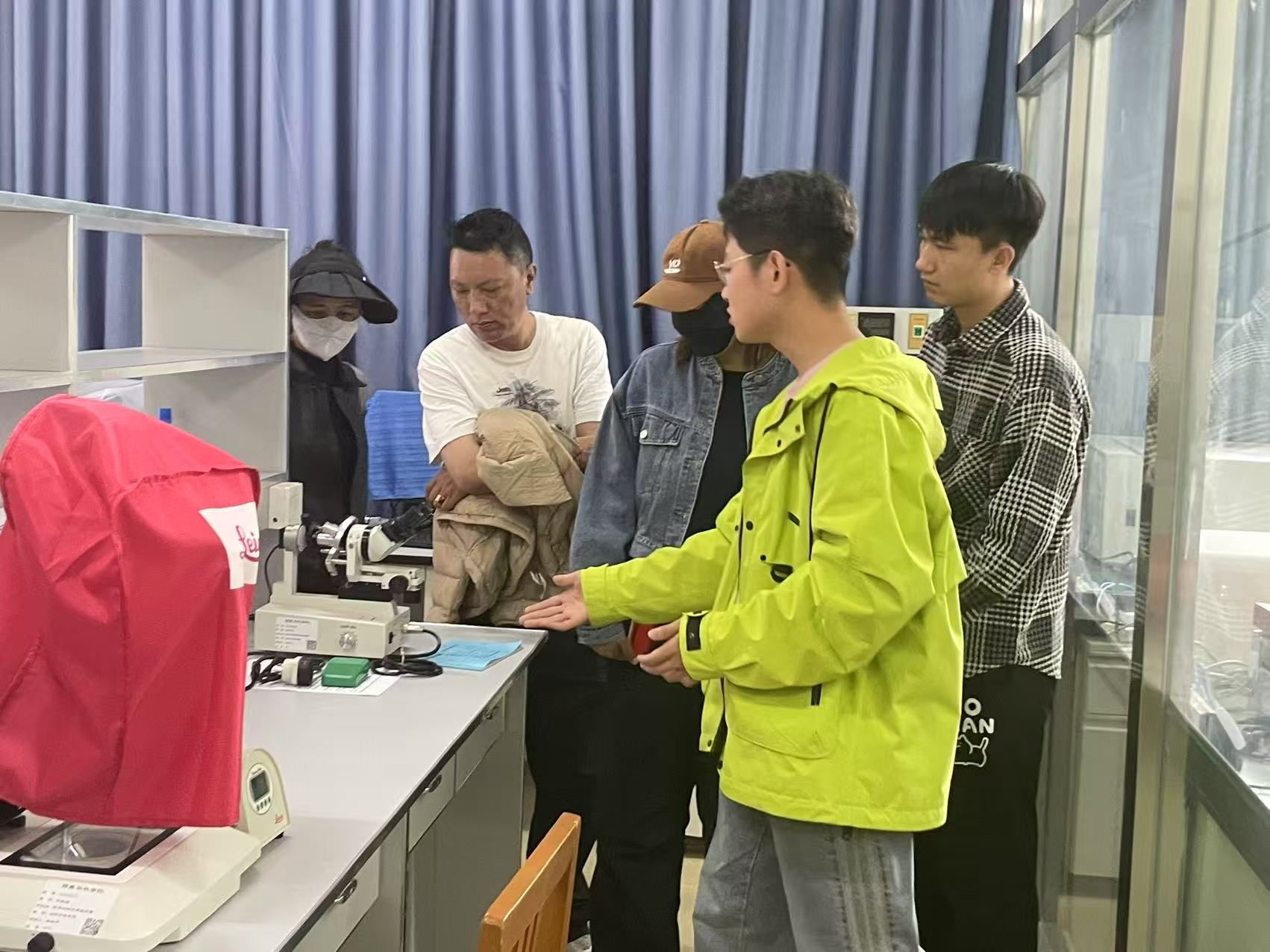 图2 工作人员介绍精子质量检测所需的仪器设备