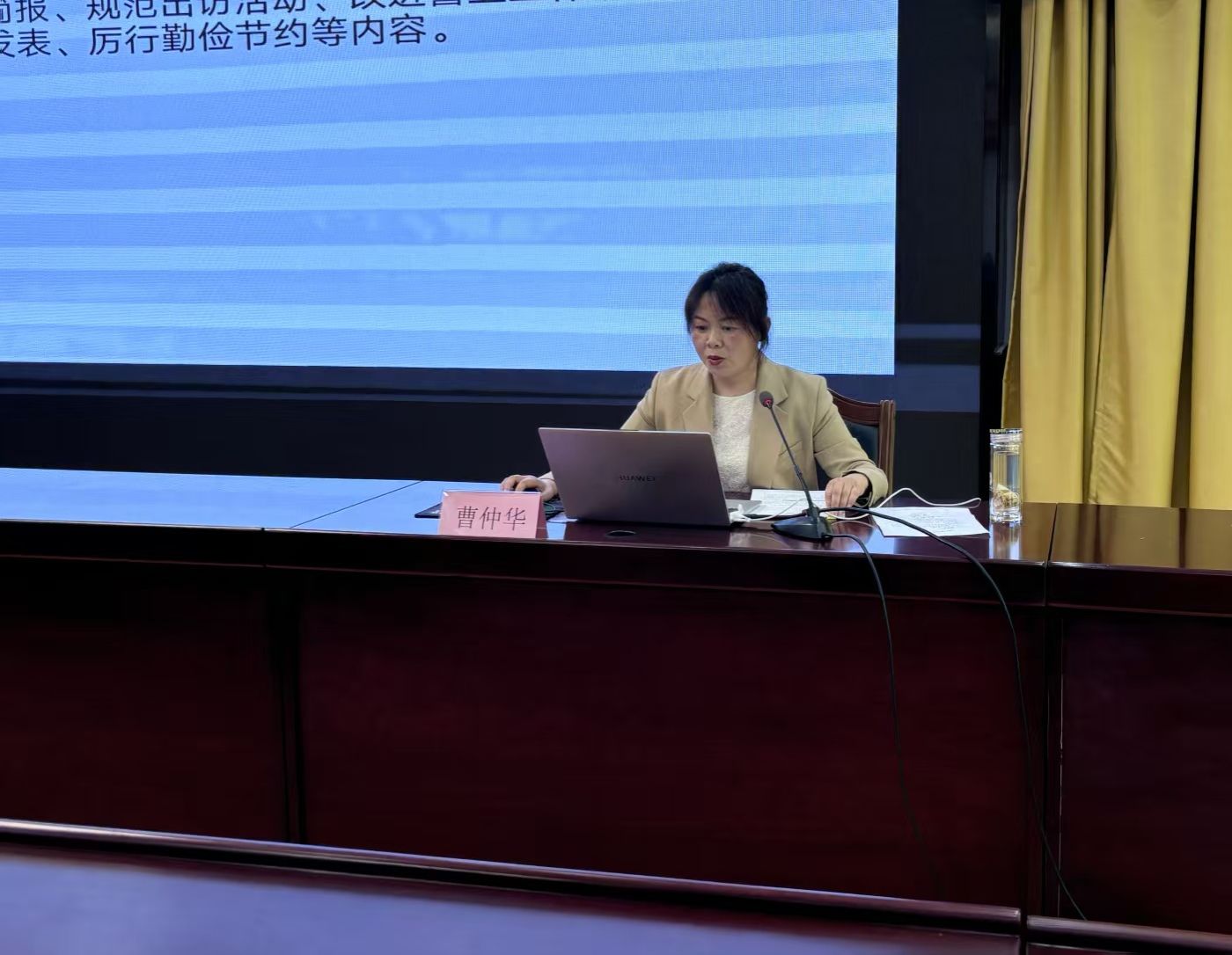 曹仲华围绕深刻领会中央八项规定精神的核心内涵与重大意义、中央八项规定精神落实情况及存在的问题、如何贯彻落实中央八项规定精神,强化作风建设三个方面做了深入且细致的讲解,从精神内涵到现实问题,再到落实举措,层层递进、深入浅出,让我们对中央八项规定精神有了进一步深刻理解。指出,中央八项规定精神是全面从严治党的重要抓手,是新时代党的建设开篇之作。通过落实,从整治突出问题入手,遏制 “四风” 蔓延势头,为全面从严治党破题开路,推动党风廉政建设和反腐败斗争取得历史性成就。强调,良好的作风是干事创业的坚实保障,党员干部只有保持务实清廉的作风,才能全身心投入工作,杜绝形式主义和官僚主义干扰,把精力集中到立足岗位,扎实工作学习等重点任务上来。