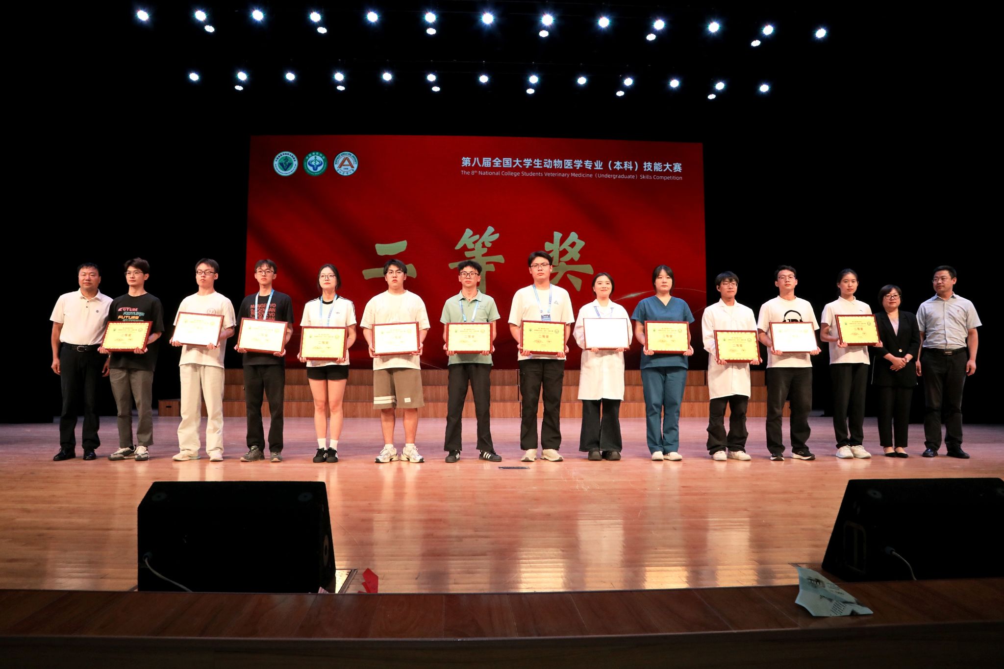 2025年8月18日至21日,第八届全国大学生动物医学专业技能大赛在黑龙江哈尔滨成功举办。本届大赛由中国兽医学院院长联席会、中国兽医协会与中国农业大学联合主办,东北农业大学承办,吸引了来自全国71所本科院校的代表队同台竞技。由欧博动物科学学院李广玉、刘新文、白玛多吉、王聪、王立平五位同学组成的代表队发挥出色,最终荣获团体二等奖。