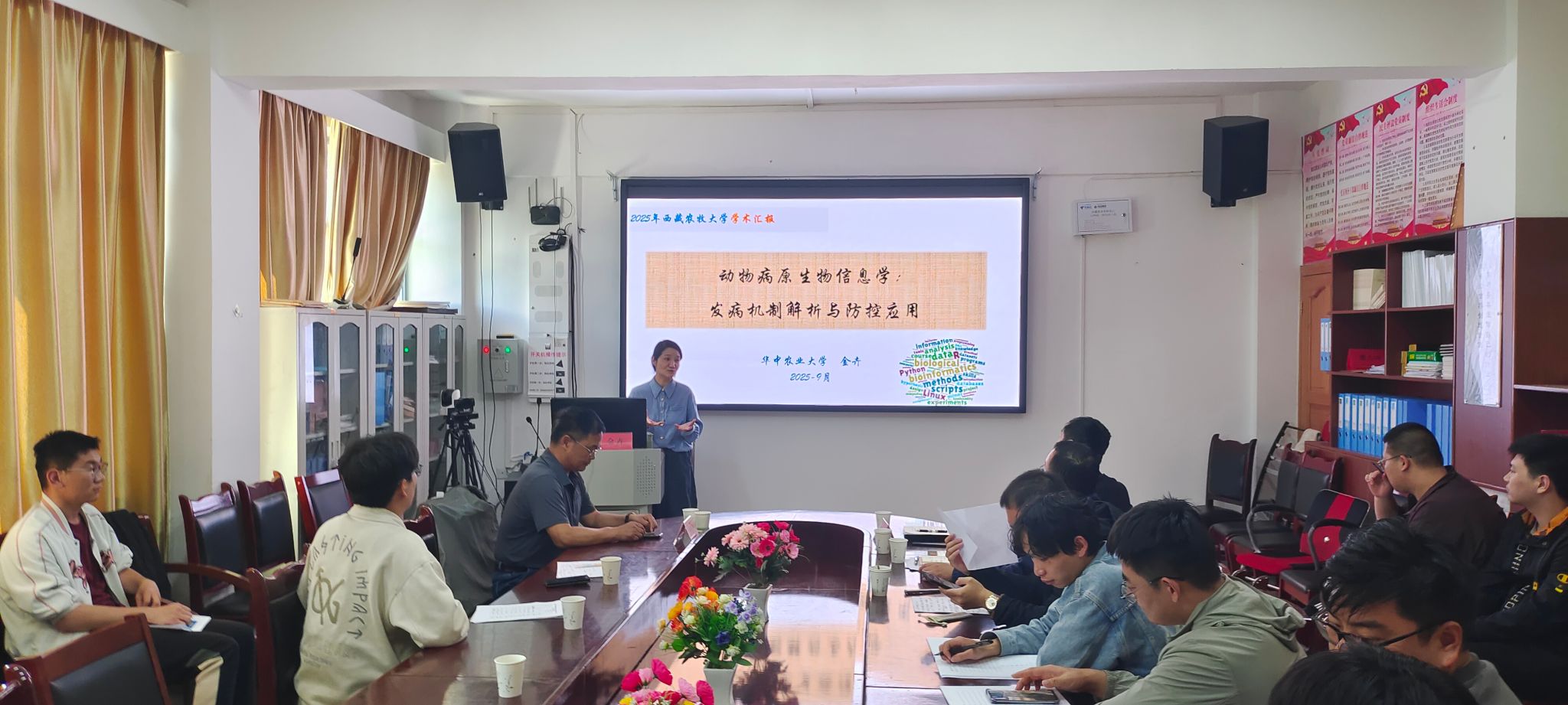 2025年9月3日,华中农业大学李家奎教授与金卉教授来欧博动物科学学院进行学术交流,分别于动物科学学院会议室作了题为《牦牛产业发展与疫病防控》和《动物病原生物信息学:发病机制解析与防控应用》的专题讲座。