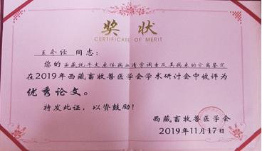 会议期间以无记名投票方式选举产生了西藏畜牧兽医学会第十届理事会成员,欧博动科学院院长索朗斯珠教授被选举为副会长,副院长刘锁珠教授被选举为常务理事长,魏学红、苗彦军、徐业芬、任子利、牛家强、吴庆侠、商鹏、贡嘎被选举为理事。另外,《西藏牦牛支原体病血清学调查及其病原的分离鉴定》被评为2019年西藏畜牧兽医学会学术研讨会“优秀论文”。最后,此次会议完成各项会议议程后于17日下午顺利闭幕。