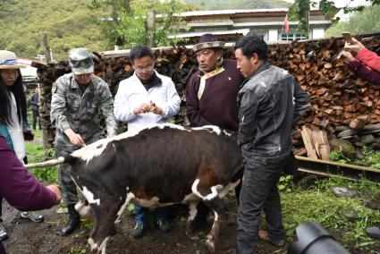 为巩固前期技术扶贫成果,加快产业成型增收步伐。2019年7月15日,国家肉牛牦牛产业技术体系牦牛疾病防控岗位专家,西藏农牧学院李家奎受32169部队邀请,再次为米林县里龙乡巴让村农牧民进行家畜疫病技术培训和技术推广。