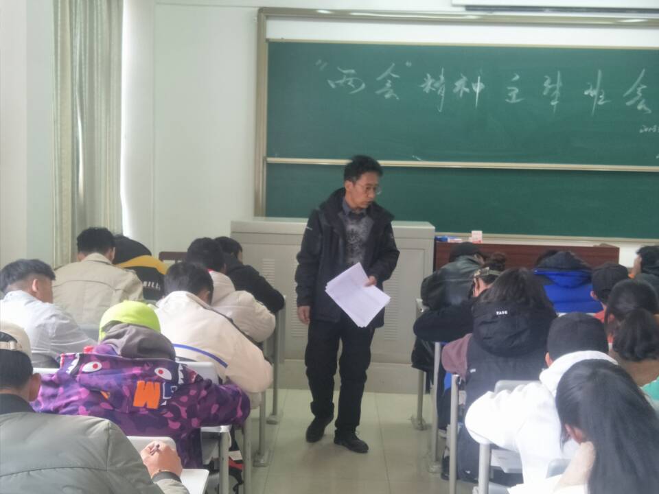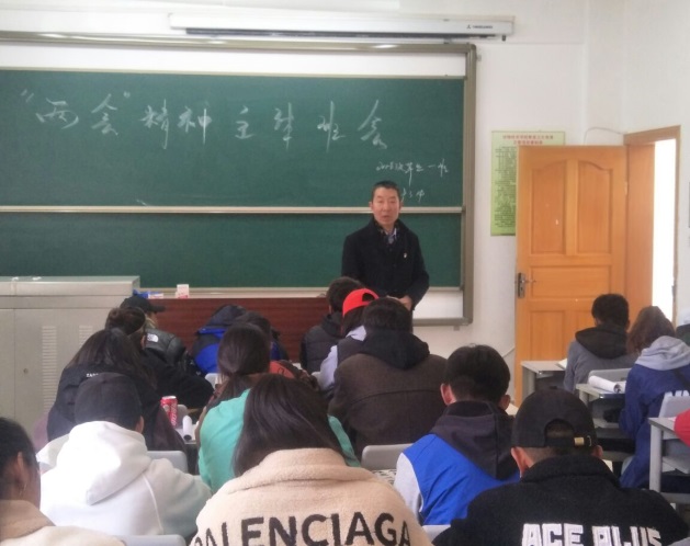 本次活动由无课班级率先开展,其他班级将在近期召开主题班会。班会要求各班班长主持。首先各班班长向同学们介绍了“两会”内容,并讲述学习“两会”精神的重要性;之后同学们结合自己理解,对“两会”内容进行深入讨论,同学们各抒己见。最后团支书对本次班会进行了总结发言,并再次强调了学习“两会”精神的重要性。期间,动物科学学院党委书记苗彦军、副书记旦巴及学生科辅导员巡视、旁听了班会召开情况,对本次班会予以肯定。苗书记还向同学们讲解“两会”精神并对同学们提出行为规范的相关要求,同学们纷纷响应。