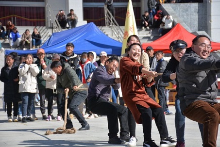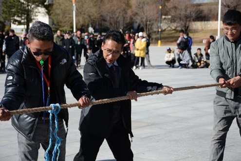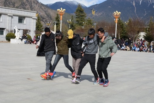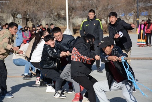 上午进行的团体游戏是拔河比赛,经过各班级十人团队的层层角逐,终18级动医一班拔得头筹;下午则是男女绑腿跑接力赛,同学们踊跃参与,经过激烈的比拼,终15级草业一班摘得冠军。团体比赛期间穿插设有诗词问答、吹气球等单人趣味活动,给予小礼品奖励;文艺部带来精彩的歌舞表演,现场气氛活跃。本次活动终在百人锅庄的欢快舞蹈中拉下帷幕。