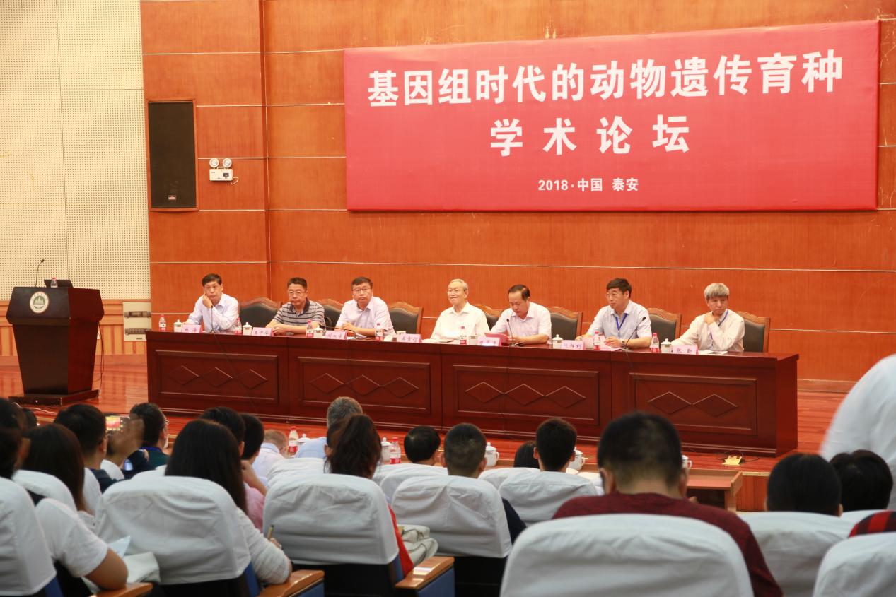 本次会议由山东农大、中国农大、中国畜牧兽医学会动物遗传育种学分会共同主办。山东农大动科学院院长林海教授主持开幕式。会议邀请了动物遗传育种领域国内外顶尖专家及部分中青年骨干专家,美国著名动物数量遗传学家JackDekkers、lgnacyMisztal,中国农大吴常信院士、上海交通大学王起山教授、集美大学方铭教授、华中农业大学刘小磊副教授等专家学者参席此次会议,围绕“基因组时代动物遗传育种研究的前沿动态和新思路”、“动物基因组选择的应用、存在问题和发展趋势”及“动物复杂性状基因挖掘的新策略和新成果”三个主题,进行专题报告,旨在分享了具有自主知识产权在合成生物学研究、复杂纵向性状遗传及基因挖掘解析的高效算法研究、动物遗传改良、基因组选择在育种中的应用等方面的前瞻性探索或研究进展。