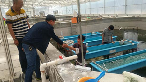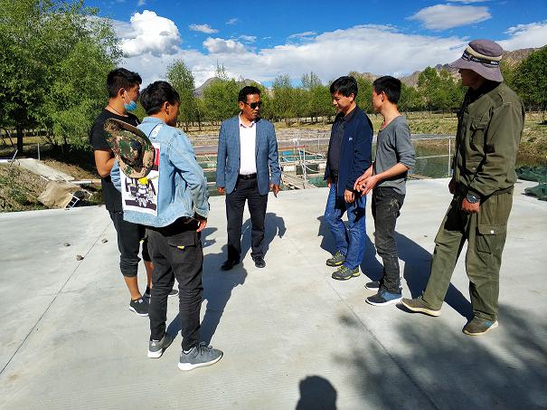 孙磊副院长首先来到水产所,在刘书记和旺久副所长的带领下,参观了鱼类资源的养殖与繁育基地,了解了学生的实习环境,通过与4名实习生的交谈,了解了实习情况、生活情况和实习内容。孙磊副院长边听边问、边嘱咐实习学生,要遵守实习单位规定和安排,要在实习中边找问题,边思考解决办法,要在通过实习提高自己,要加强与老师沟通,要在实习中体现农牧学院学生风貌和素质。