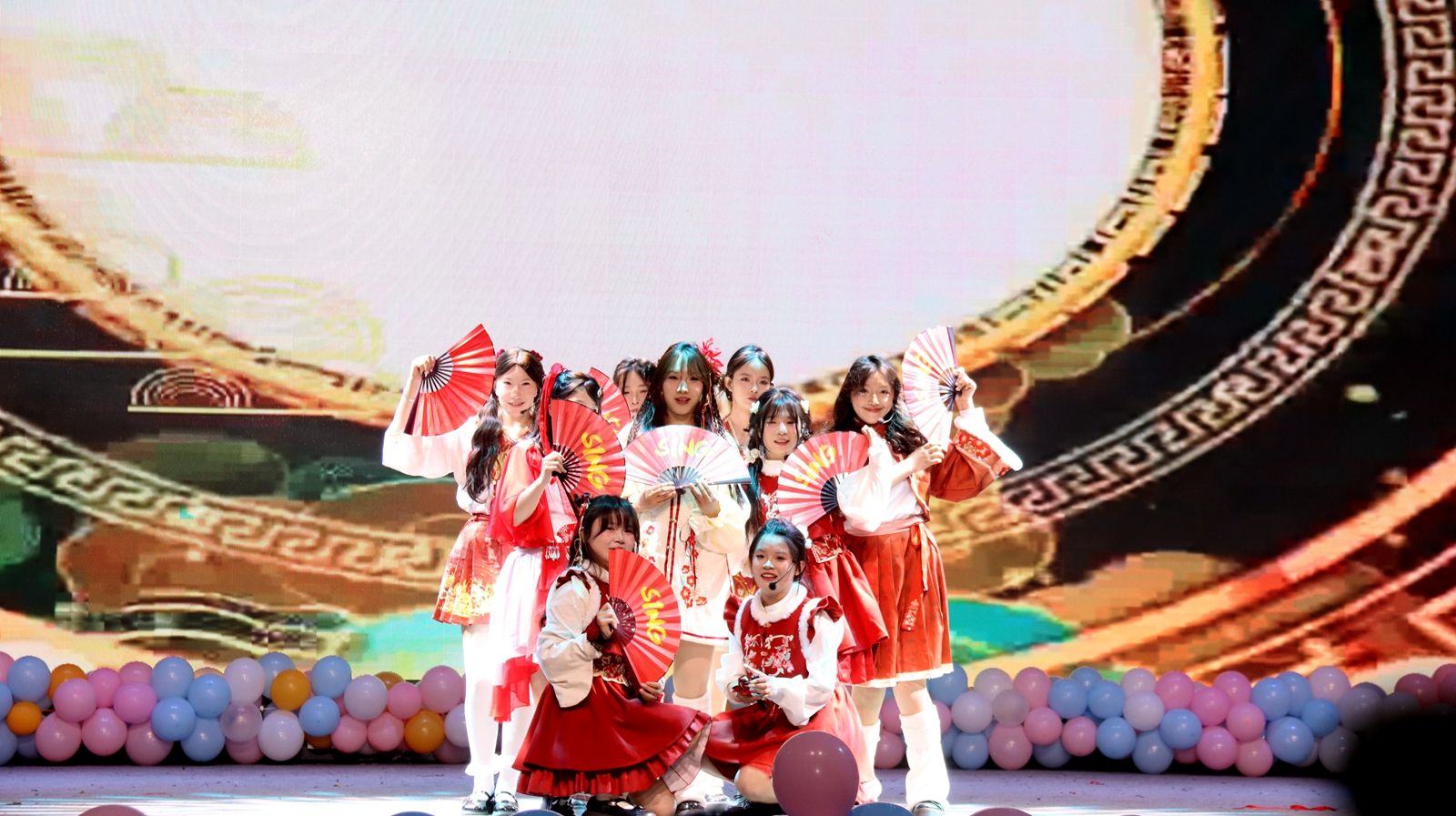 此次活动分为三个篇章:《春之声—万物生新篇章》《秋之韵—岁月藏万象》《春秋共舞 向光而行》。晚会以一段激情澎湃的藏戏《吉祥颂》开场,舞者们动感的舞姿瞬间点燃了现场的气氛,台下观众纷纷鼓掌欢呼,为晚会拉开了精彩的序幕。紧接着的是情绪饱满的葫芦丝独奏《月光下的凤尾竹》,演奏者指尖流淌出的美妙音符如潺潺流水般在会场中回荡。整场晚会节目形式丰富多样,包括独唱、合唱、歌伴舞、现代舞蹈、传统舞蹈等,以铸牢中华民族共同体意识为主线,融合了民族特色与现代元素,为观众呈现了一场难忘的视听盛宴,进一步推动了民族交流与文化融合。每篇结束处,还穿插着问答小游戏,成功地与观众联动,提升了同学们的积极性。最后,舞蹈《欢庆》为此次晚会画上完美的句号。每个篇章都充分地体现出欧博学子的精神风采。