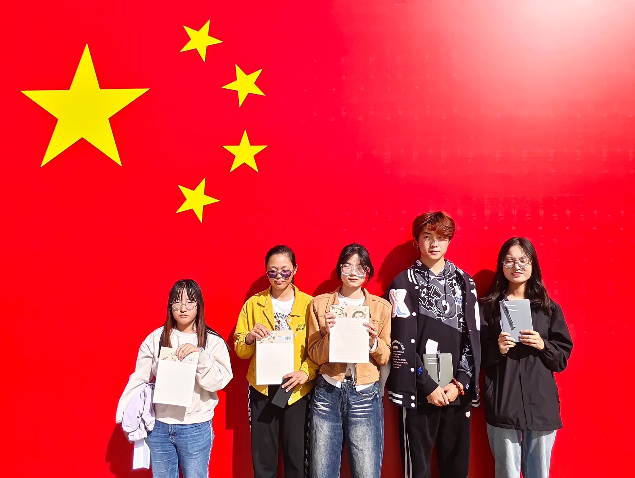 活动开始前,全体人员参加隆重的升旗仪式。伴随着庄严的国歌声,五星红旗冉冉升起,迎风飘扬。在场的每一位师生,目光都聚焦在这面鲜艳的红旗上,心中充满了无比的自豪与敬仰。随后,青年马克思主义研究协会全体成员在国旗下集合,他们心怀对祖国母亲的深深敬意,共同拍摄了一段满载对祖国母亲美好祝愿的视频。接着,为激发欧博师生的爱国主义精神和营造团结友好的校园氛围,青年马克思主义研究协会、青年志愿者协会和公共教学部学生会准备了许多丰富多彩的活动,有充满趣味的套圈活动、考验诗词功底的飞花令、紧张激烈的抢凳子游戏等。