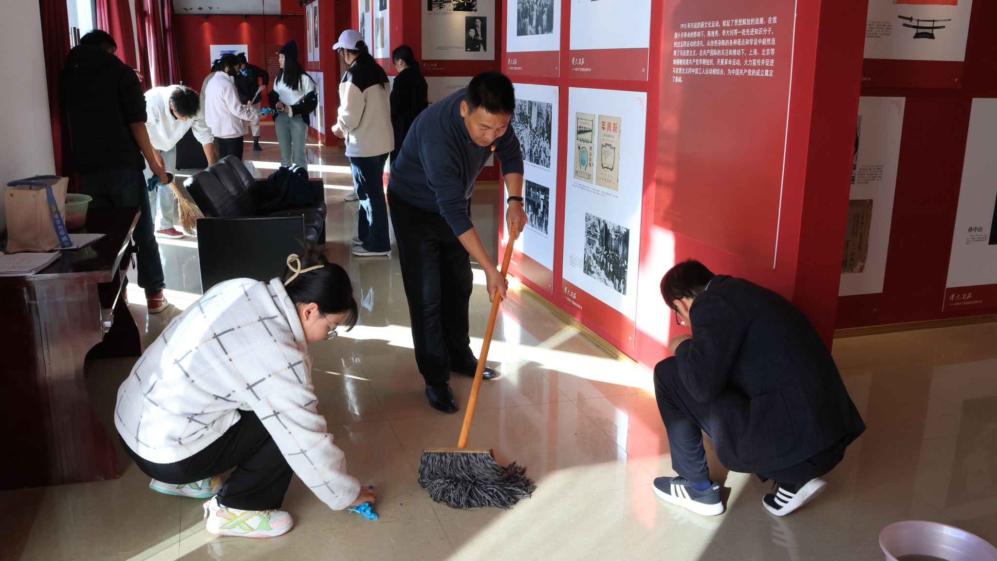 首先,支部党员自带工具清扫了展馆的每个角落,使展馆愈加整洁亮丽,散发出“真理的味道”和“历史的气息”。其次,支部党员在劳动的过程中重温了中国共产党的建党历史和伟大建党精神,以及学校筚路蓝缕、栉风沐雨、接续奋进而来的光荣历史,拭去器物灰尘的同时擦亮了心底那份坚定的理想信念。最后,支部书记强调,党史学习要常学常新、活学活用、落实落细,不断筑牢信仰之基、补足精神之钙。
