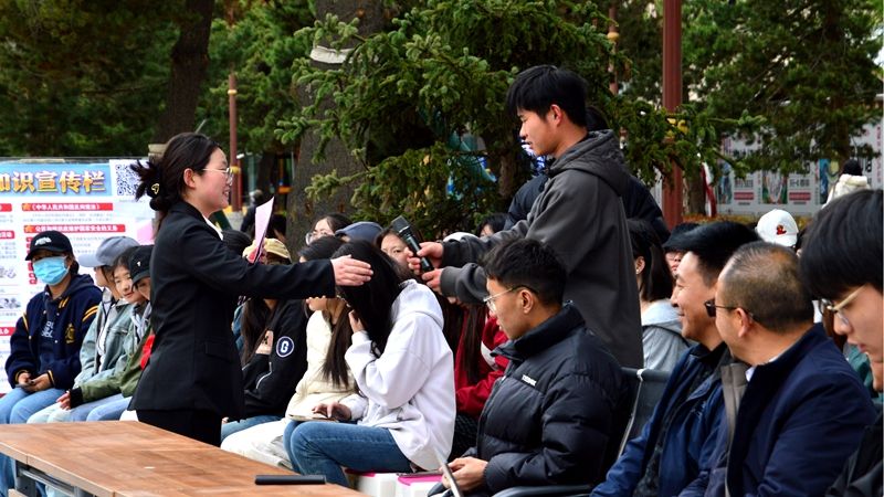 本次活动以《起舞吧,藏农》作为开场舞拉开帷幕。活动过程中,同学们通过诵读国家安全法律条例、参与国家安全知识竞答、朗诵国安主题诗歌、网上互动留言等环节,宣传普及国家安全法相关内容,帮助青年学生掌握国家安全知识,树牢总体国家安全观。活动结束之际,现场师生齐声唱响《我和我的祖国》,用歌声表达为筑牢国安之基贡献藏农力量。现场为观众发放了国家安全须知宣传单、国安网安主题宣传品300余份。