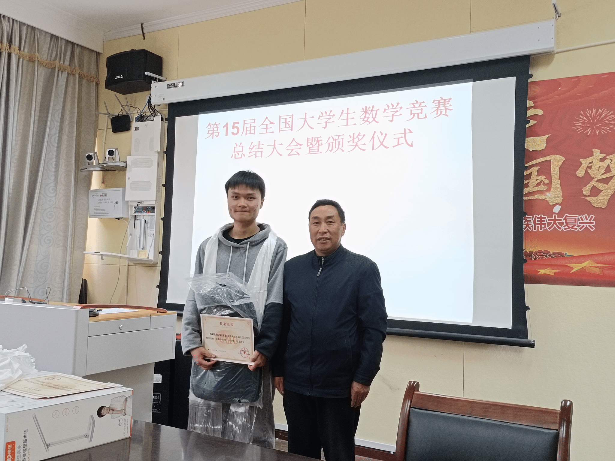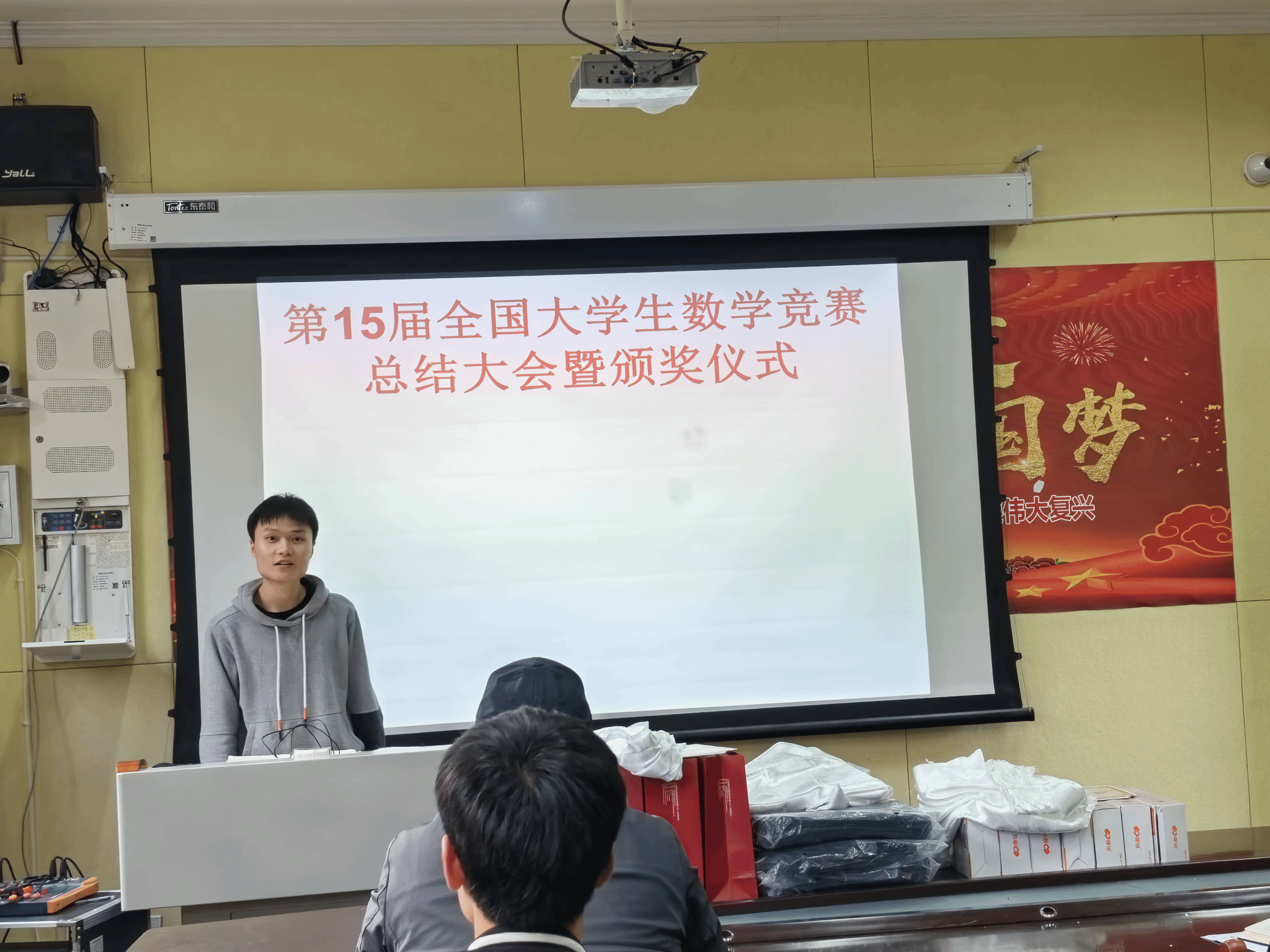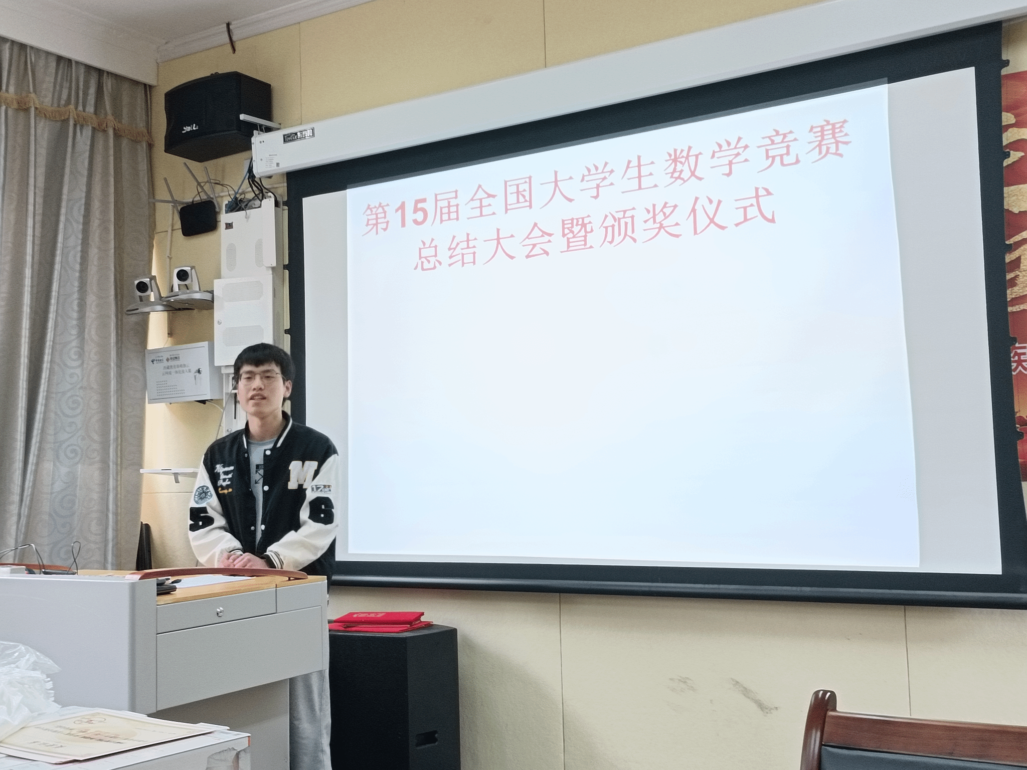 杨玉田主任对积极参赛但未获得理想成绩的同学表示鼓励,他讲数学竞赛的题目的难度相当大,有些题目的难度都超过考研题目,赛题包含的数学方法很灵活。他希望参赛者要打牢数学基础,加大训练,在2024年的参赛中争创佳绩。