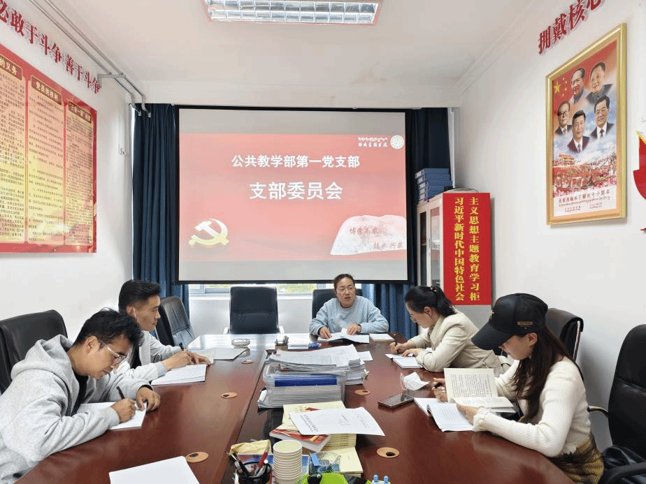 5月23日下午公共教学部教工第一党支部支部委员在部党员活动室开展了支部委员专题学习会,会议由刘秀丽同志主持。