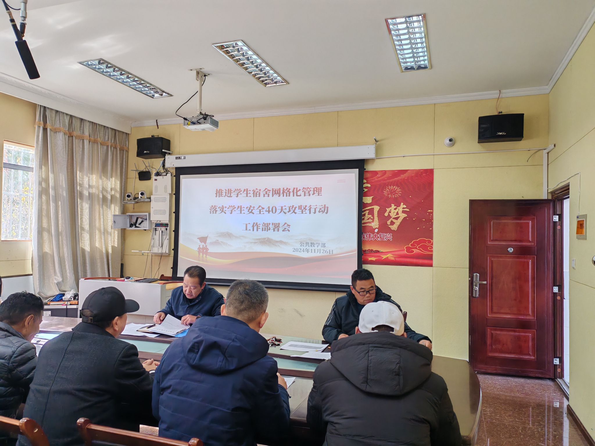 为提高学生宿舍管理水平,按照“三全育人、五育并举”要求,根据学工处“关于进一步推进学生宿舍网格化管理,落实学生安全40天攻坚行动的通知”,结合“三联三进一交友”工作制度。公共教学部组织全体教职工于2024年11月26日召开学生宿舍网格化管理工作部署会。全面提升公共教学部学生宿舍管理水平,确保学生宿舍安全、和谐、有序,为学生提供一个良好的学习和生活环境。