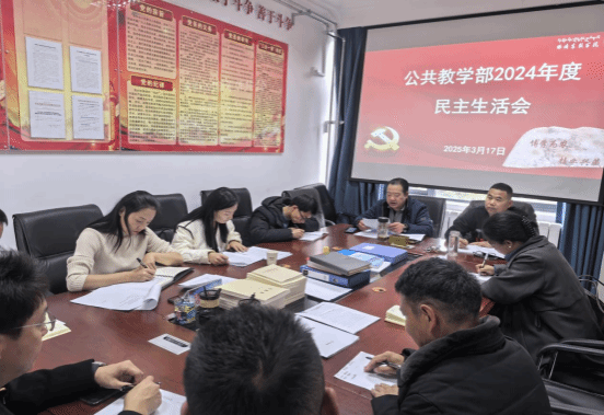 根据学校《关于开好2024年度县处级党员领导干部民主生活会和组织生活会的通知》(藏农院字【2024】5号)要求,3月17日中午2点,公共教学部在党员活动室召开2024年度民主生活会,会议由部党委书记衡思泉主持,全体班子成员、党员代表、群众代表、学生代表和两委一代表参加了民主生活会,学校民主生活会督导组成员李思润参会。
