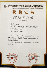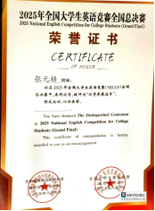 2025年8月2日——8月7日,2025年全国大学生英语竞赛(NECCS)全国总决赛在郑州成功举行。欧博马克思主义学院(公共教学部)外语教研室莫永华老师带领欧博生态学专业的郑芳洁、张元格和动物科学专业的彭菲同学等参加了该项赛事,并斩获了全国大学生英语演讲比赛二等奖和三等奖各1名、全国大学生英语风采大赛三等奖1名、全国大学生英语辩论赛三等奖1名,张元格同学被评为了优秀参赛选手,莫永华老师被评为优秀指导教师。