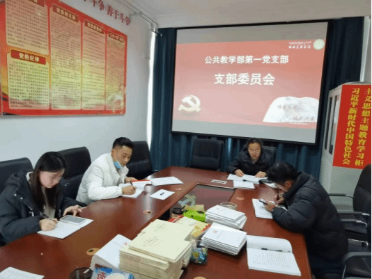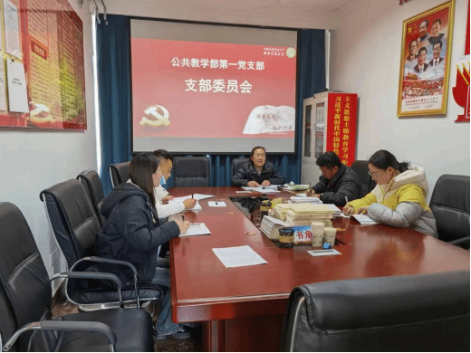 3月27日下午公共教学部教工第一党支部支部委员在党员活动室开展了支部专题会,会议由刘秀丽同志主持。