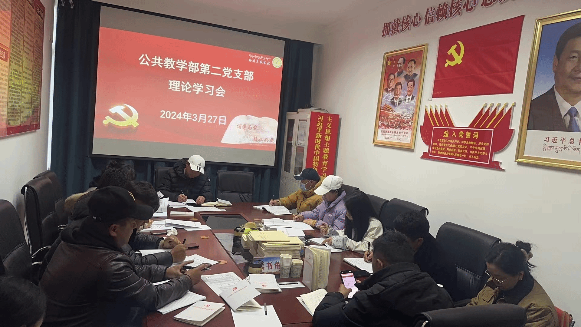 根据学校党委和部党委的工作安排, 本着以学铸魂、以学增智、以学正风、以学促干,引导广大教师遵守职业道德,做师德高尚模范,公共教学部第二党支部全体党员于2024年3月27日晚在党支部活动室召开理论学习会。会议由支部书记刘西锋同志主持。