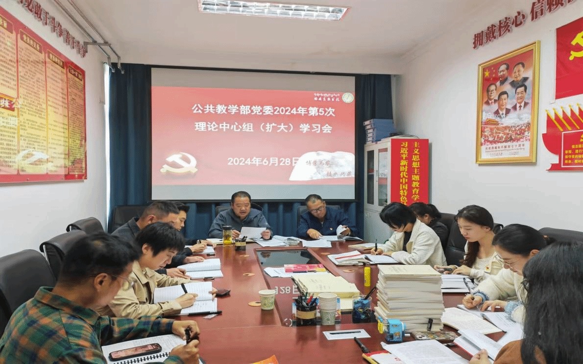2024年6月28日上午,公共教学部组织召开党委2024年第5次理论中心组(扩大)党纪学习教育读书班学习会,会议由部党委书记衡思泉主持,部班子成员、各党支部书记、支部委员参加了学习会。