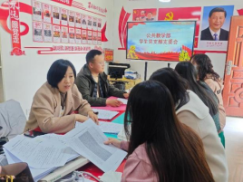 2025年4月18日,公共教学部学生党支部召开支委会,会议由支部书记刘玉娥主持,全体支委委员和各班班主任、辅导员参加了会议。本次会议的主题是遴选新一期优秀入党积极分子加学校发展对象培训班的人员。