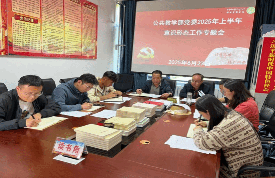 2025年6月27日,公共教学部党委在部党员活动室召开2025年上半年意识形态工作专题会议。会议由部党委书记衡思泉同志主持,部主任、副书记、各班班主任、辅导员等人员参加。