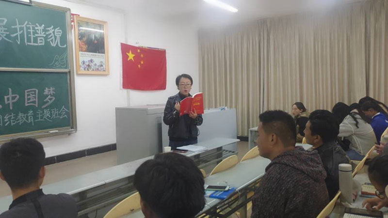 为深入贯彻落实党的十九大精神、习近平新时代中国特色社会主义思想,深入开展“不忘初心、牢记使命”主题教育活动,不断增强各族师生的中华民族共同体意识。公共教学部于2019年9月20日上午10:00在2210教室开展以“中华民族团结一家亲,同心共筑中国梦”为主题的主题班会,辅导员兼班主任罗晓莉老师及公共教学部全体学生与会。