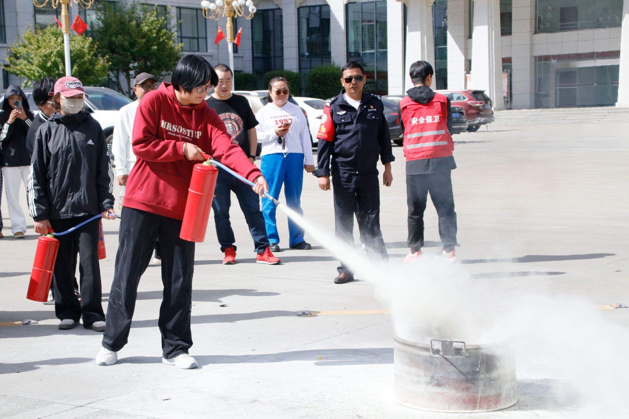 在成功疏散至安全区域后,消防人员随即进行了详尽的火灾特点解析、预防措施介绍以及灭火器使用方法和逃生技巧的演示。他们不仅用浅显易懂的语言进行讲解,还亲自示范灭火器的正确使用方法,并鼓励师生们积极参与实践操作。在消防人员的指导下,师生们纷纷拿起灭火器,亲身体验了其在火灾中的重要作用。