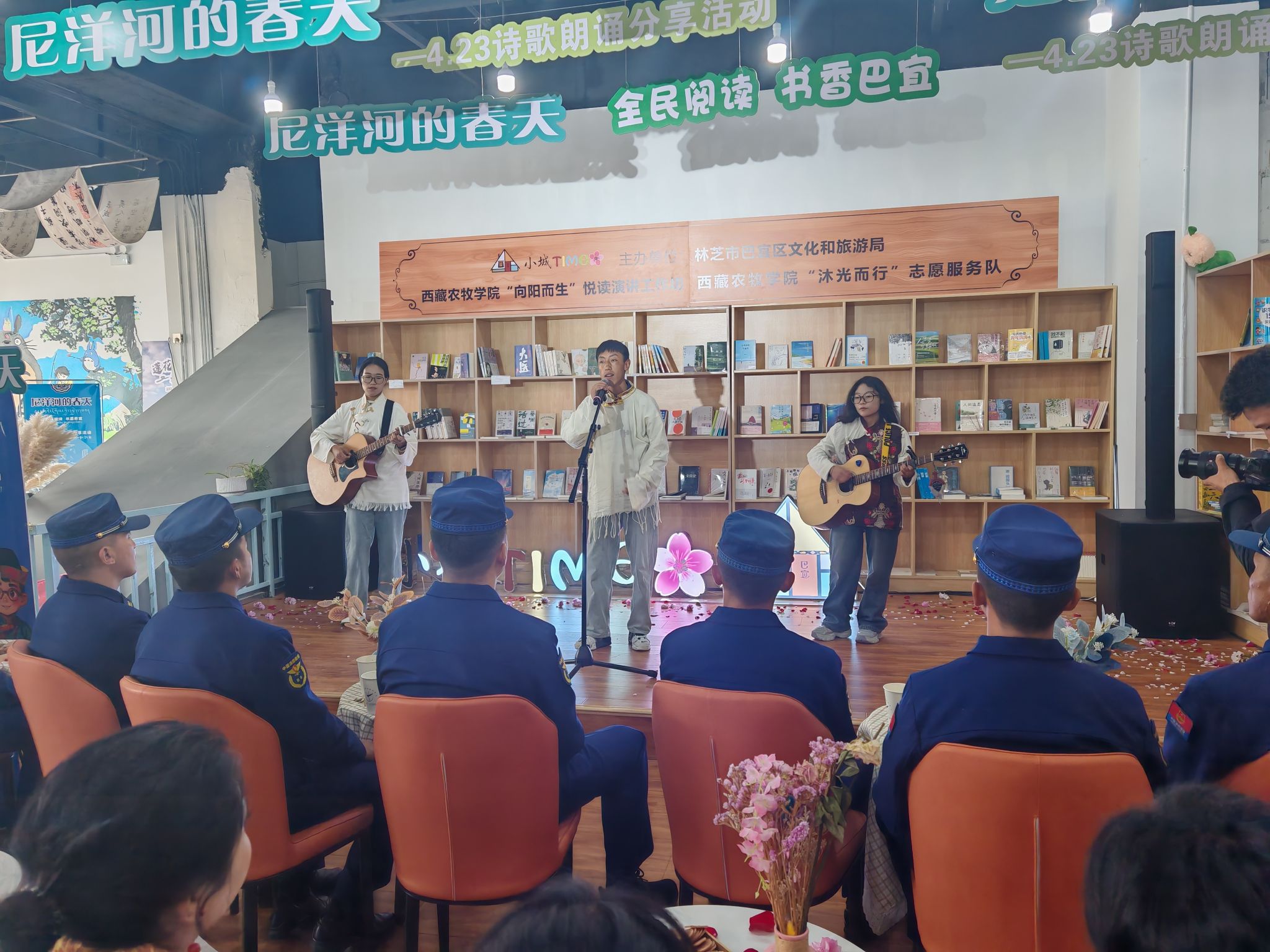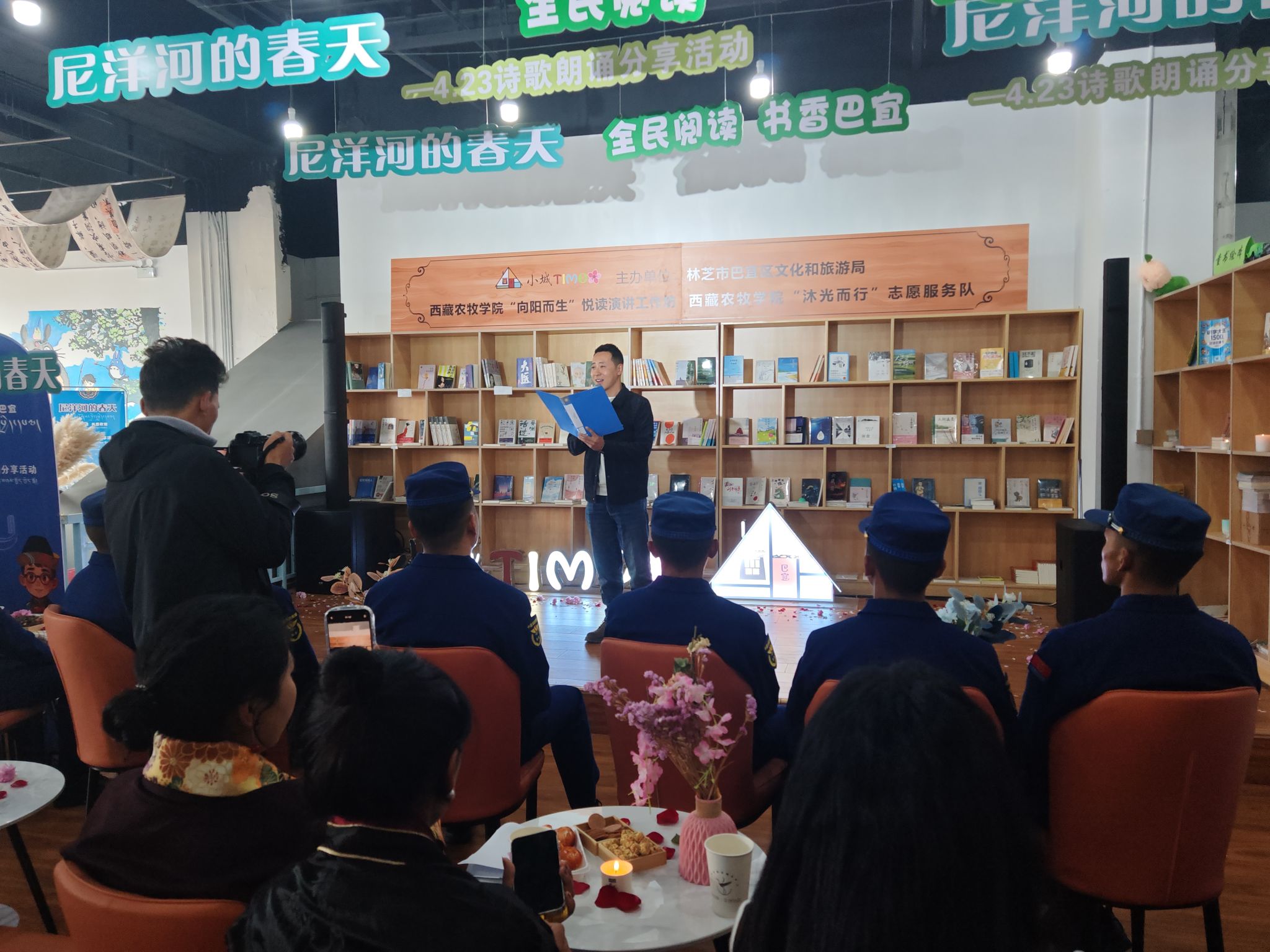 为深入推进全民阅读,营造浓厚的书香氛围,林芝市巴宜区文化和旅游局、西藏农牧学院“悦读演讲工作坊”与西藏农牧学院“沐光而行”志愿服务队联合举办了“尼洋河的春天——4.23诗歌朗诵分享活动”。此次活动吸引了巴宜区及西藏农牧学院众多读书爱好者参与,活动还特邀了巴宜区消防官兵及杰出校友于祖梁,于2025年4月23日上午10:00在风知我·文创书店盛大举行。