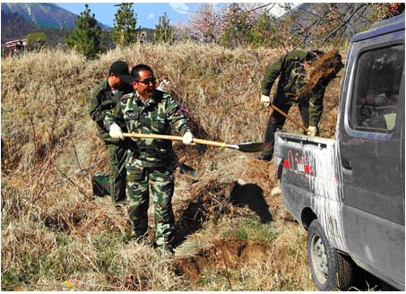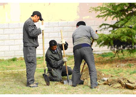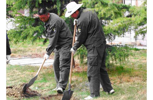 时间紧、任务重,为了在最短的时间内完成任务,全处除必要岗位安排留守人员外,全部积极投身热火朝天的活动中,大家热情高涨、齐心协力,充分发扬不怕苦、不怕累的后勤作风,有的同志手磨破了,有的同志衣服挂破了,都毫无怨言。男同志们铲士抬树、女同志端茶送水,人人都争相为校园的绿化美化做出自己的贡献。
