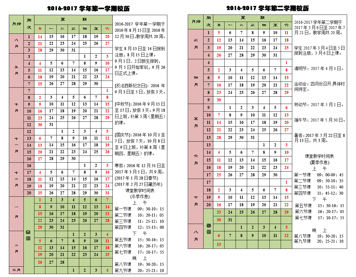 以往校历