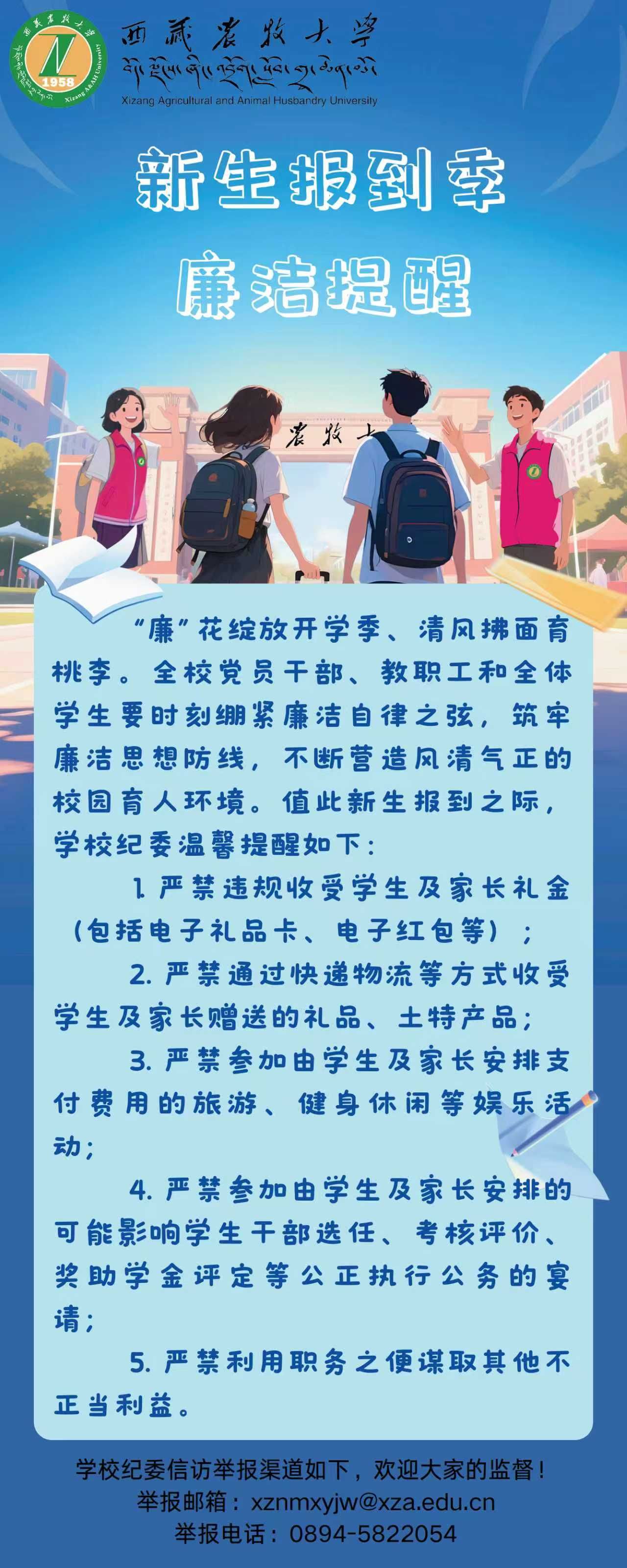 “廉”花绽放开学季、清风拂面育桃李。值此新生报到之际,学校纪委编制了廉洁寄语,愿全校党员干部、教职工和全体学生要时刻绷紧廉洁自律之弦,筑牢廉洁思想防线,不断营造风清气正的校园育人环境。