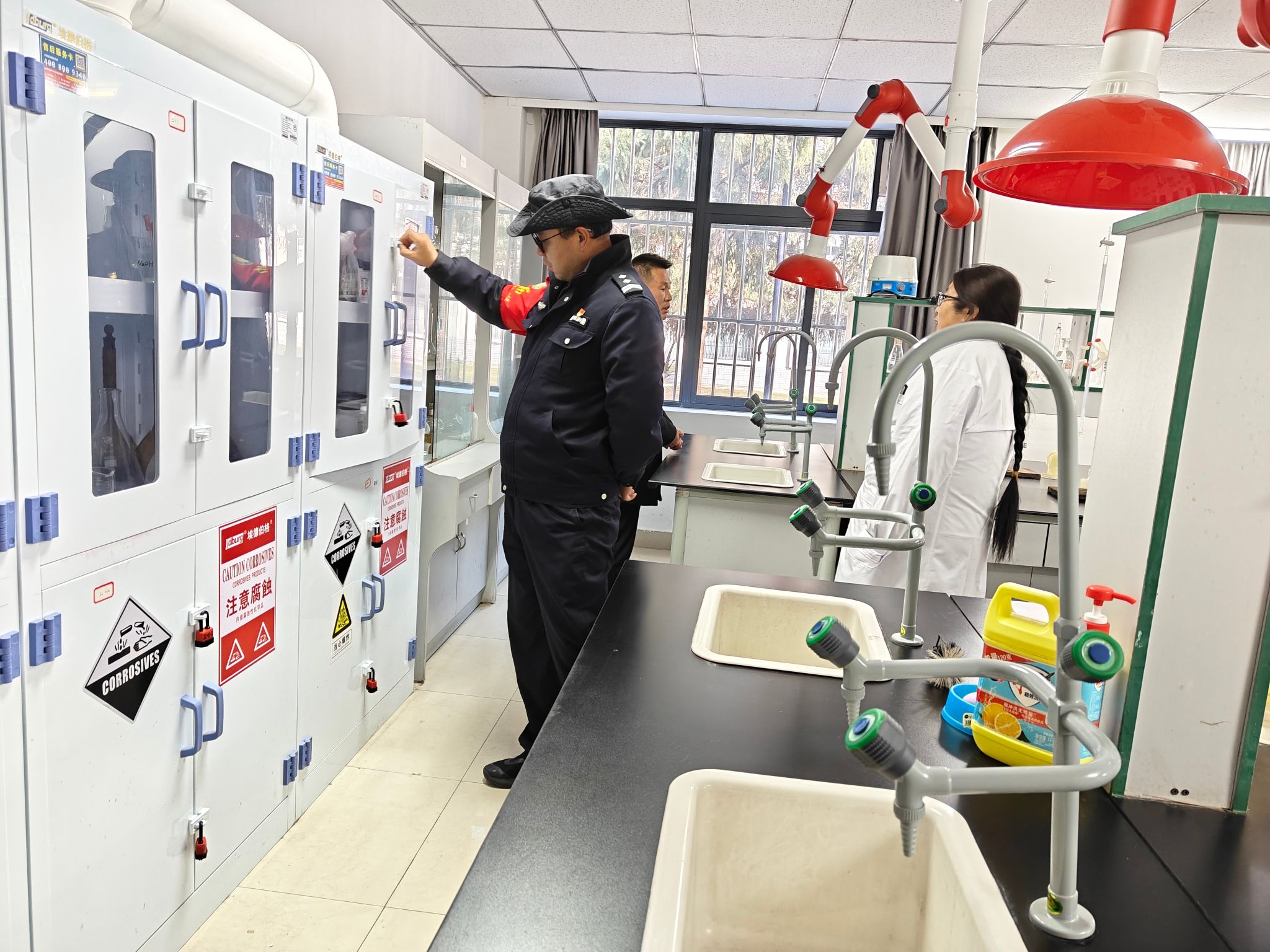 为加强学校实验室安全管理,保障师生生命财产安全,2024年11月12日星期二,教务处联合安保处、科研处、后勤处学校各类实验室安全制度建设、危险化学品管理、仪器设备安全、消防设施配备、实验室废弃物处理等方面进行了全面检查。