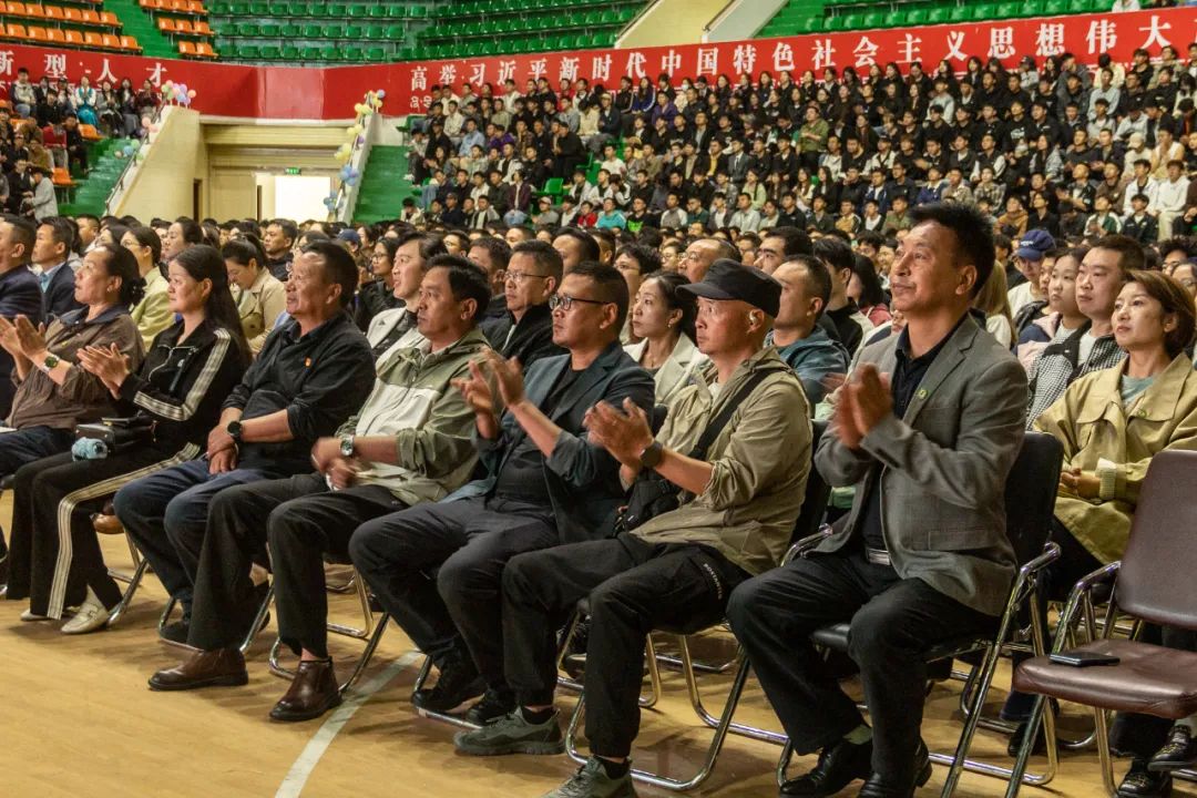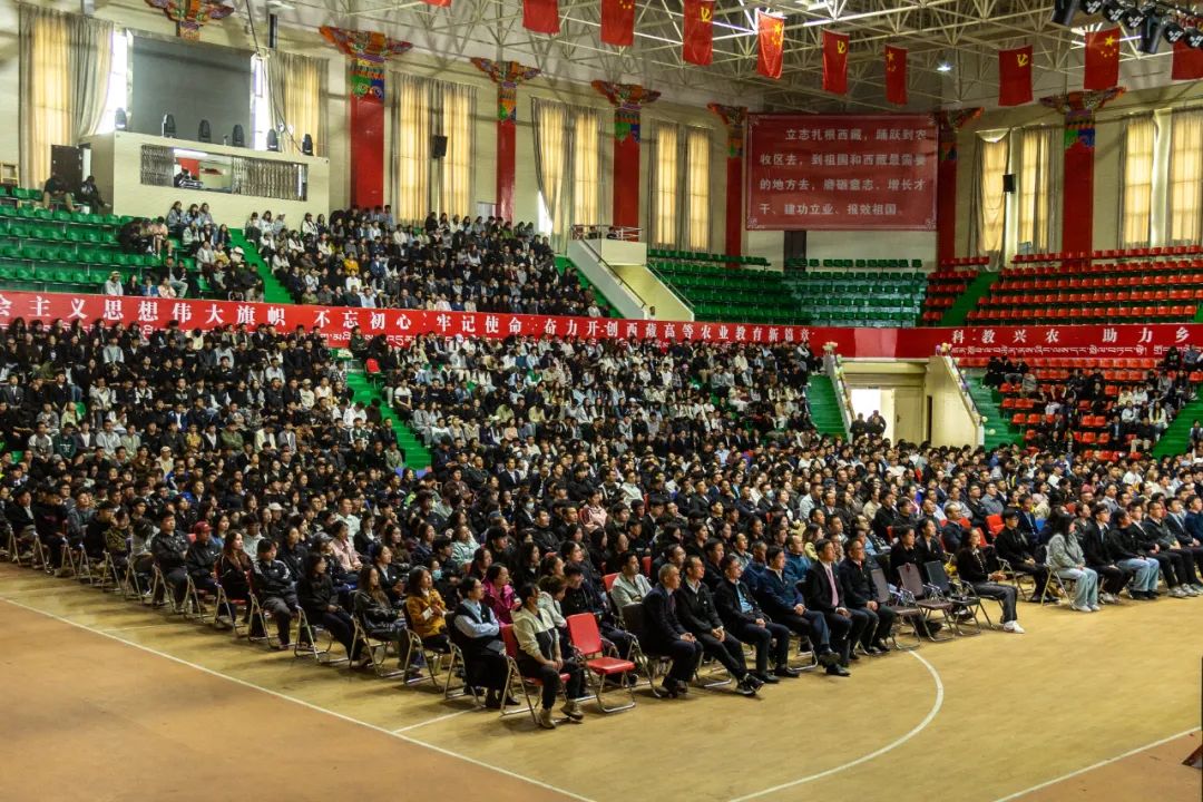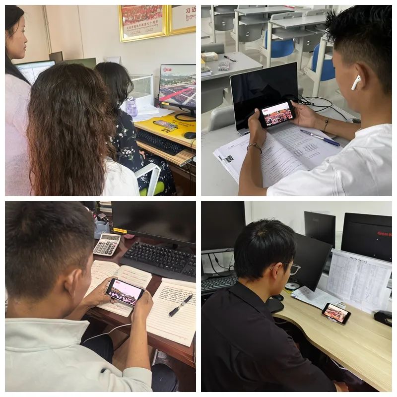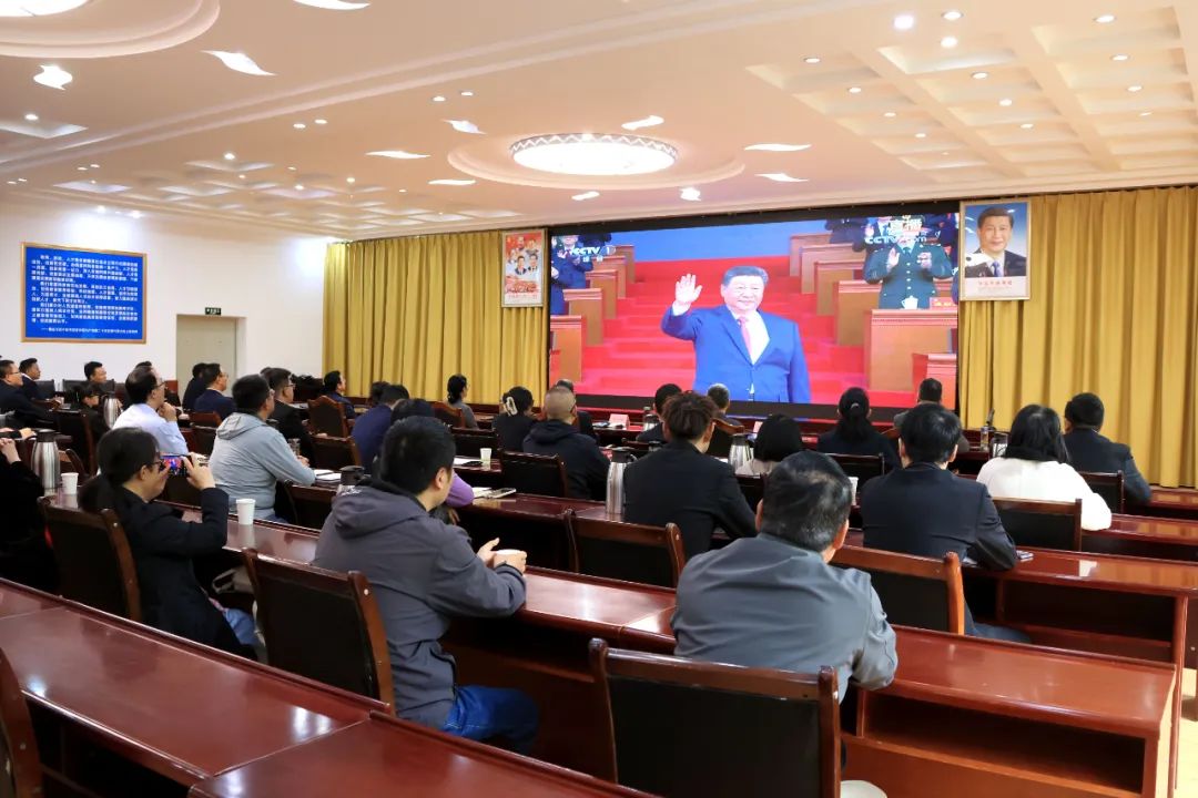 学校领导强巴央宗、王程、巩同梁、曹仲华、邢震、尼玛、刘晓丽,各教学单位、职能部门负责人,以及2000余名师生代表在一号行政楼三楼中心会议室、文体馆集中收看庆典;未能参加集中收看的师生也各自利用手机、网络等时刻关注大会盛况。