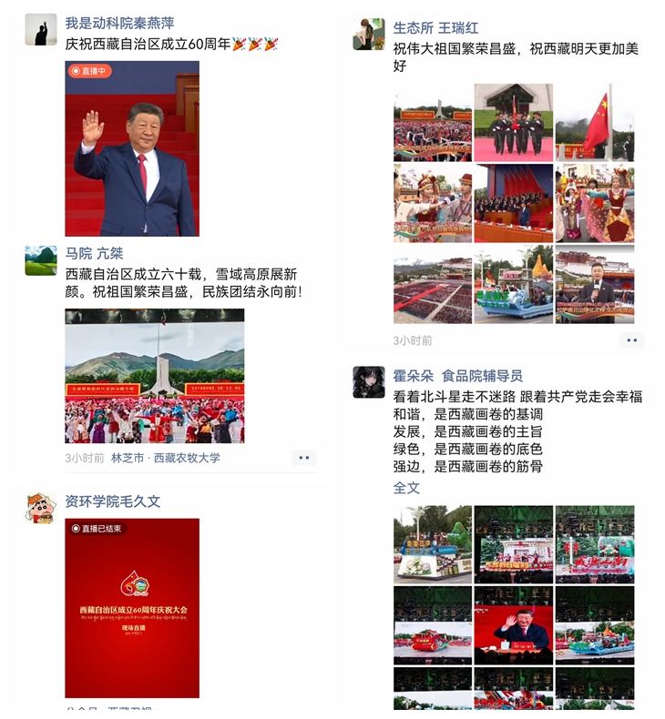 观看过程中,师生们聚精会神、全情投入,虽隔着屏幕却仿佛置身于观礼现场,他们与大会活动同频共振,庄严肃立迎国旗,高唱国歌;认真学习聆听各级领导、同志的讲话;为一组组精彩纷呈的花车游行队伍欢呼雀跃;特别是每当镜头中出现习近平总书记挥手示意的画面时,师生们都自发地报以热烈的掌声,充分彰显了藏农大师生深刻领悟“两个确立”的决定性意义,坚决做到“两个维护”的思想自觉和政治担当。