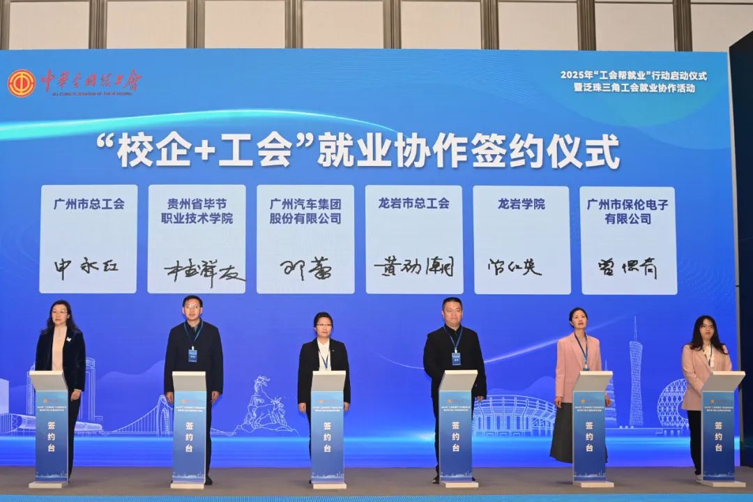 (2025年2月27日,中华全国总工会在广东省广州市启动2025年“工会帮就业”行动。图为“校企+工会”就业协作签约仪式。中新社记者 陈楚红/摄)