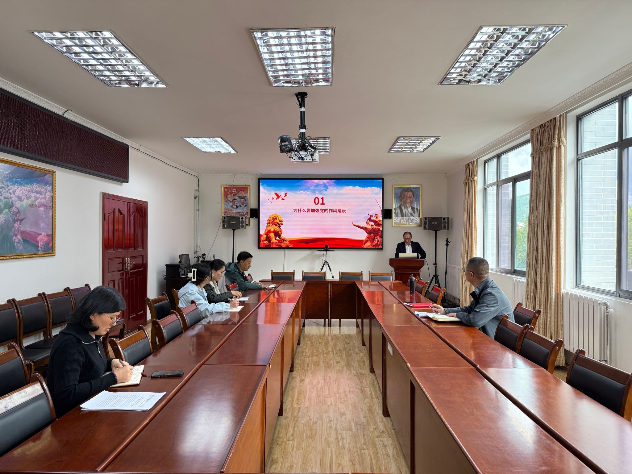 2025年6月20日,科研处开展深入贯彻中央八项规定精神学习教育专题学习及研讨活动。此次活动由科研处副处长李奇主持,并以“加强党的作风建设的路径与经验”为主题讲了专题党课,他用通俗易懂的语言、具体生动的案例,讲认识、讲体会、提措施。