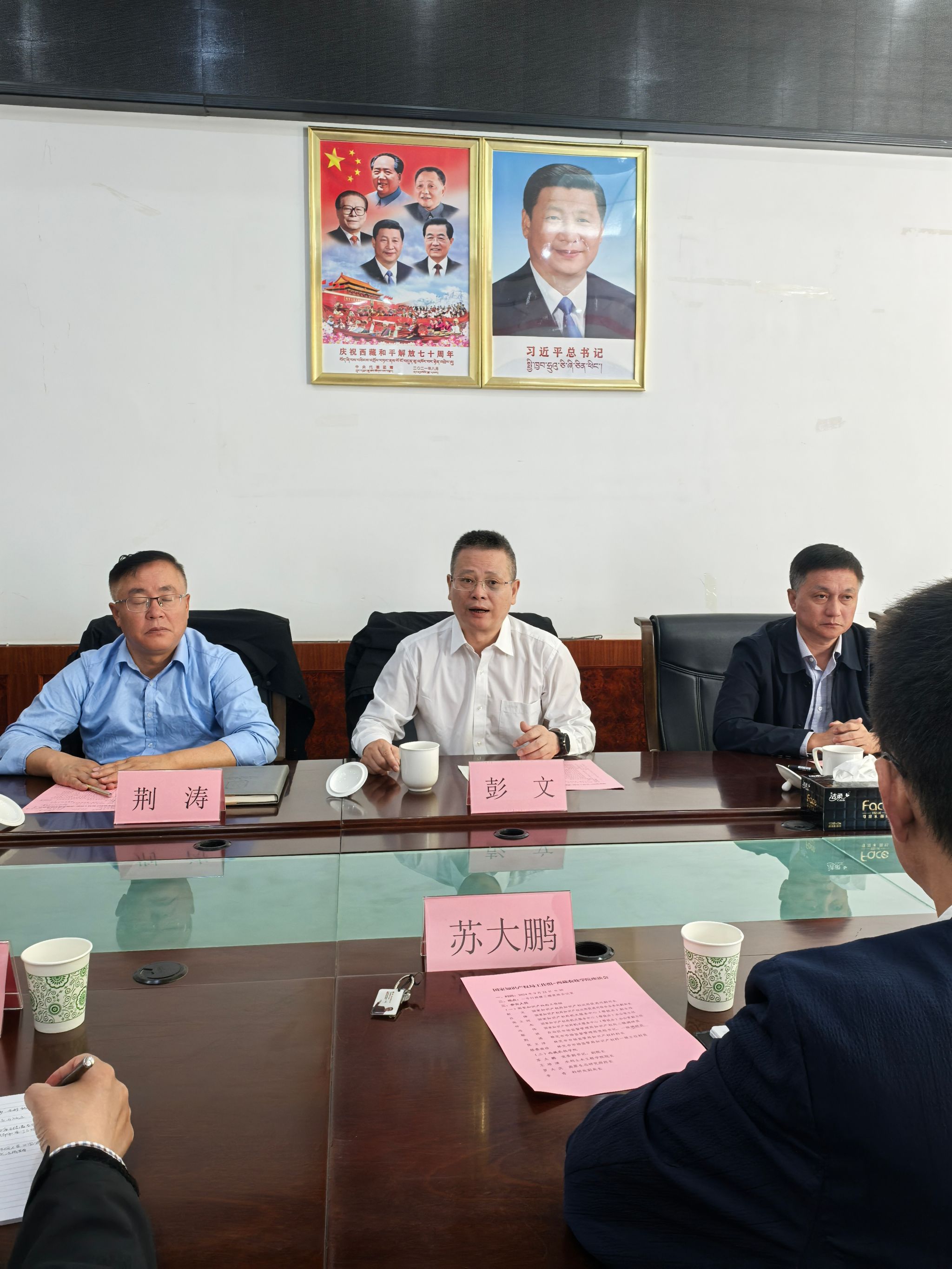 9月21日,国家知识产权局知识产权运用促进司副司长彭文、国家知识产权局机关服务中心(帮扶办)副主任张立同一行在欧博调研,指导知识产权和专利转化运用工作。国家知识产权局知识产权运用促进司综合业务处副处长吕律,西藏自治区市场监督管理局知识产权处二级调研员鄢波,林芝市市场监督管理局党组书记、一级调研员荆涛等陪同调研。西藏农牧学院党委副书记、副校长苏大鹏,水利土木工程学院院长王培清,高原生态研究所所长罗大庆及各二级单位科研干事、科研骨干参加座谈交流。会议由科研处副处长李奇主持。