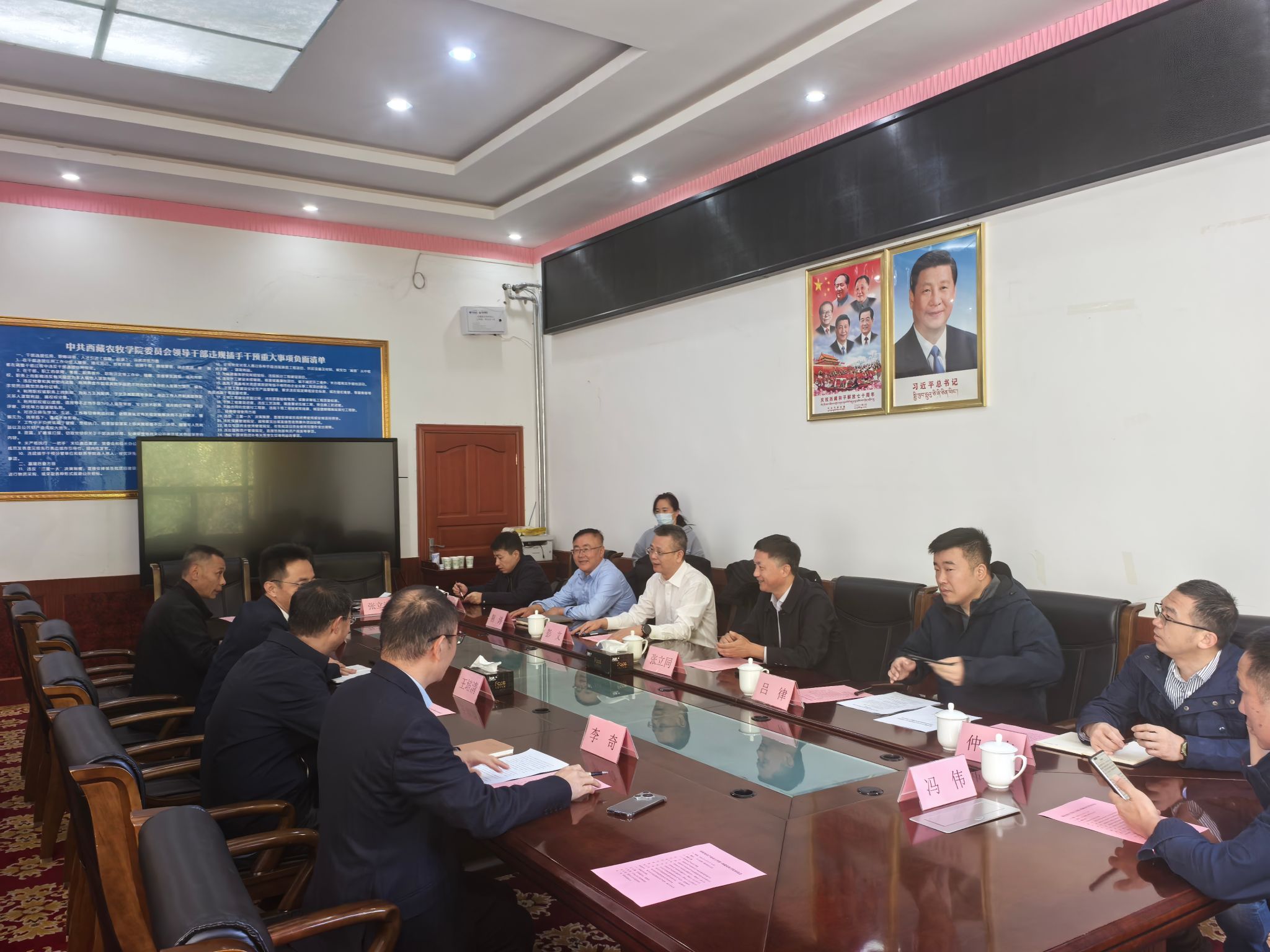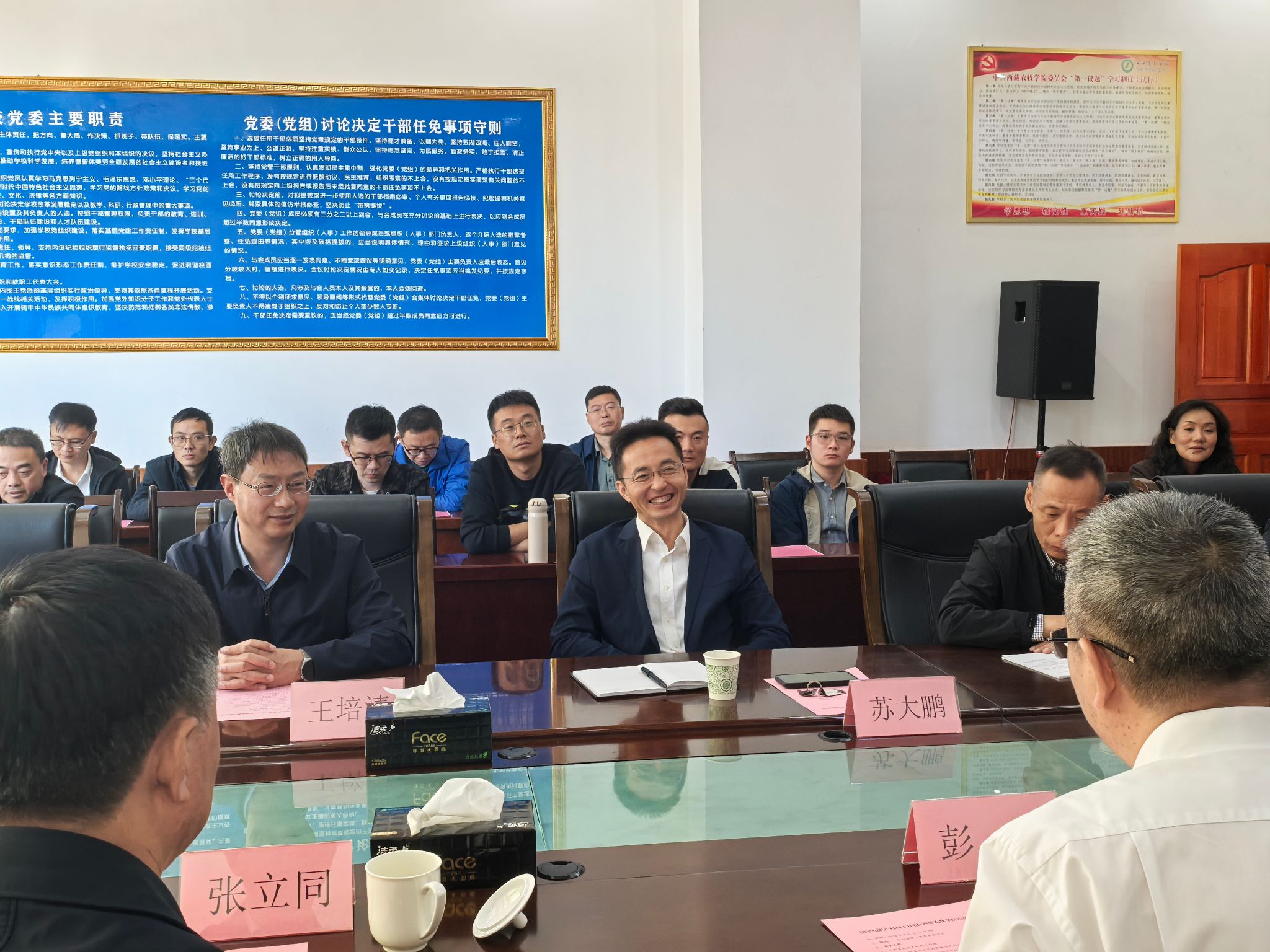 苏大鹏向彭文一行表示热烈欢迎,介绍了西藏农牧学院办学历史、发展现状及“高原农业、高原生态、高原水电”三条主线。他表示,学校将坚持“立足高原,面向西藏,服务‘三农’”办学定位,同时围绕铁路建设、清洁能源开发积极优化学科建设和科学研究,服务国家战略。