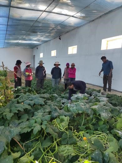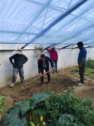 对于札达县高海拔的农牧民来说,能吃上自己种的蔬菜,在过去是不敢想的,为发展自种蔬菜,政府为该组修建了两座半地下式温室。通过近一年试种,实现了黄瓜、西葫芦等十几种蔬菜的有效种植,但从种植现状看,存在以下问题:一是温室种植布局不合理,10多种蔬菜混合种植,既杂乱,土地利用率又低。二是每天每家都派人到温室里面除草浇水,但因不懂管理,各种蔬菜野蛮生长,虽然黄瓜、西瓜、番茄用小木棍进行搭架,但搭架混乱,且村民均不知道打侧枝和授粉,西瓜仅个别株有座果,但植株纤细,长势极弱,结果率极低;西葫芦白粉病严重,但不知道清理老病叶,虽然枝蔓生长势强,但座果率低,落花落果严重;叶菜类、根菜类蔬菜进行穴播,但播种深度在5cm左右,既播种不整齐,又因播种太深而徒长严重。三是对黄瓜果实的采摘成熟度把握不准,符合采摘标准的果实不及时采摘,老黄瓜较多,对连续结果影响大。四是水肥管理不到位,土壤缺肥与浇水过多并存。