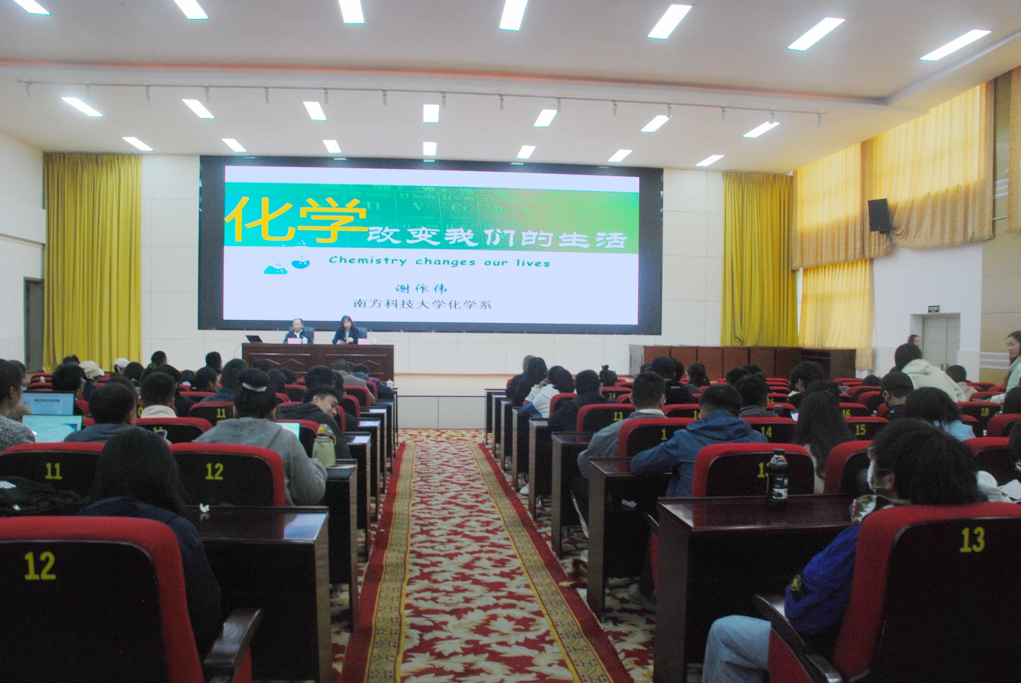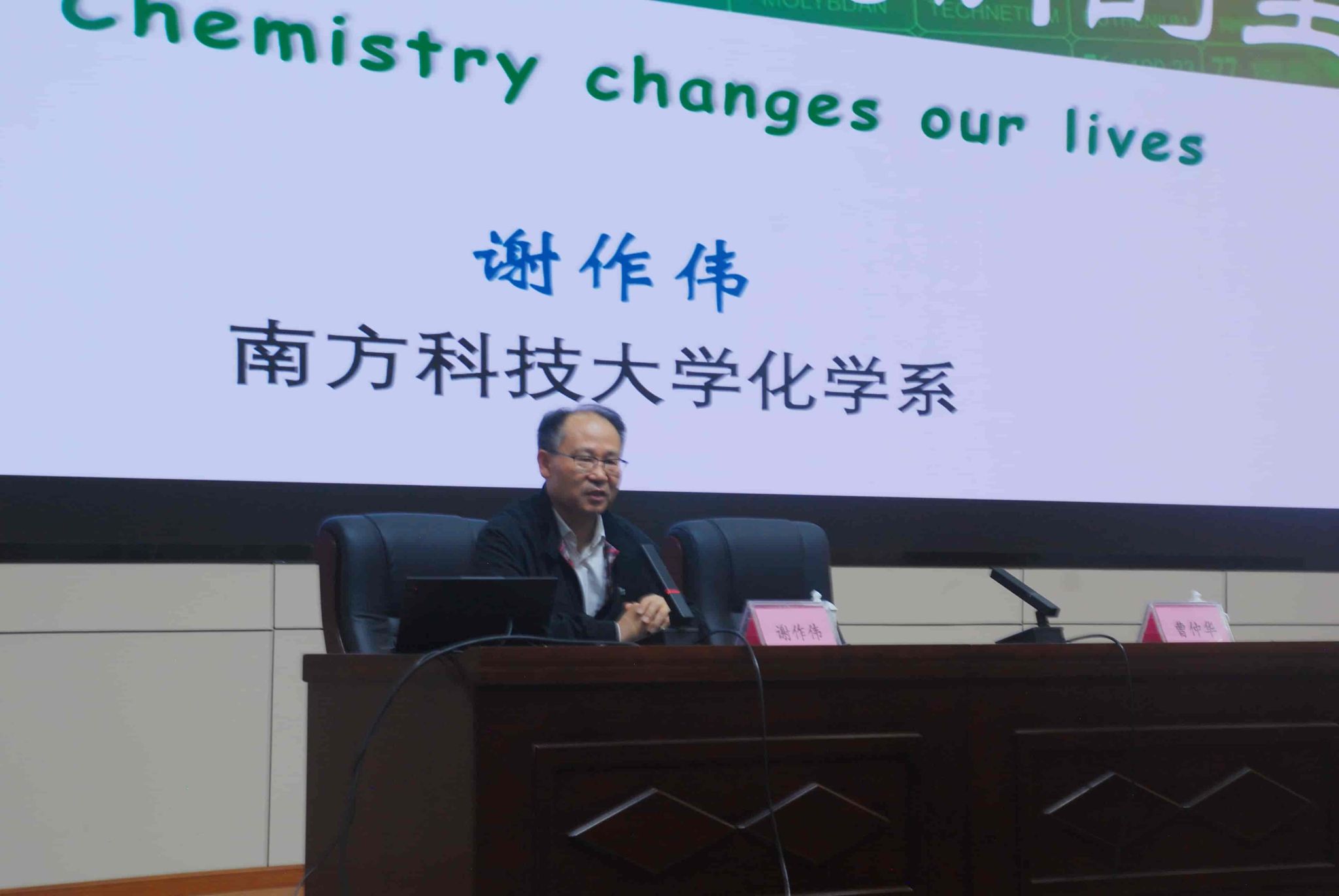 5月12日,金属有机化学家、中国科学院院士、香港科学院院士、南方科技大学讲席教授、香港中文大学卓敏化学讲座教授谢作伟应邀在学校一号行政楼报告厅做了题为“化学改变我们的生活”的科普讲座。此次活动由学校党委委员、副校长曹仲华主持,全校200余名师生参加。