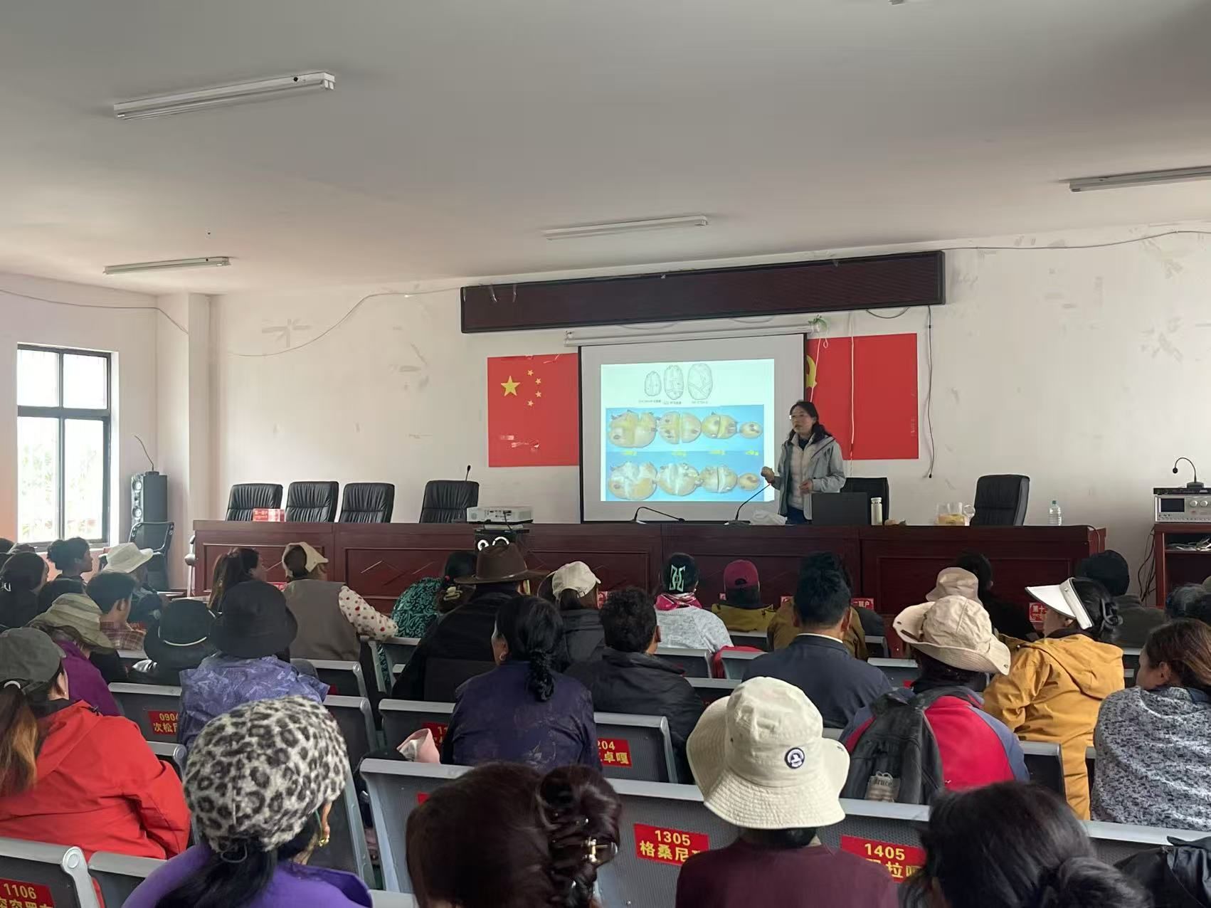 在活动周期间,欧博何燕副教授赴波密县倾多镇栋曲村开展土豆栽培切块种植技术培训,采用图文并茂的形式,用通俗易懂的语言为广大村民上了一堂科普课。互动交流环节,在场村民踊跃提问,何教授详细解答他们在选种、种植以及田间管理等方面的疑问。培训讲座受到村民的热烈欢迎和一致好评。