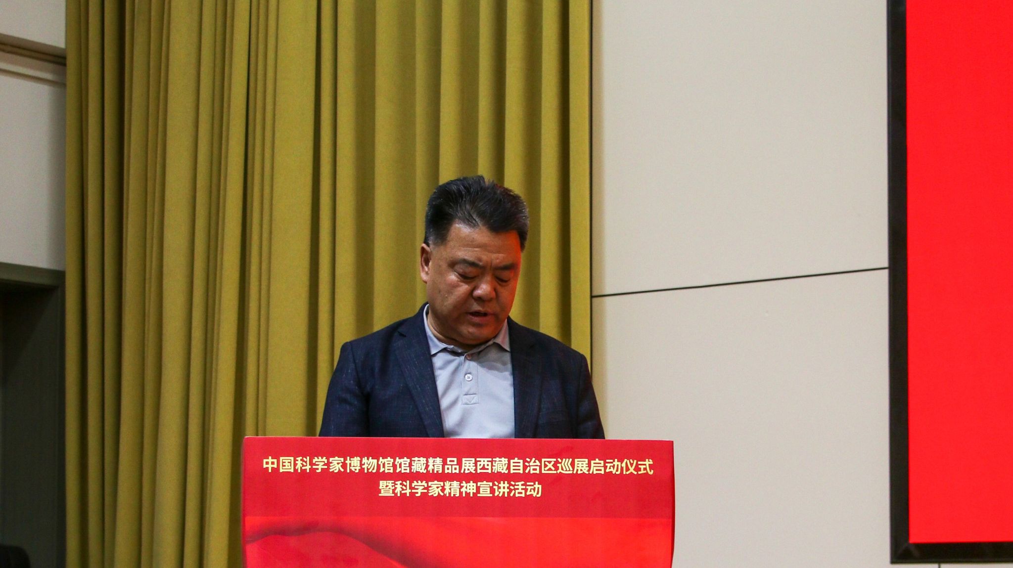 龚世林主持仪式,全体与会者观看主题片《底色》,通过影像回顾中国科技工作者奋斗历程。白元平在致辞中指出,展览全景式呈现了中国科技工作者在中国共产党领导下矢志报国、服务人民的情怀,以及在科技强国建设中取得的卓越成就与精神品格。曹仲华勉励师生以展览为契机,深化科研创新、科普服务与科学家精神传承的融合,为西藏经济社会高质量发展及国家战略提供支撑。