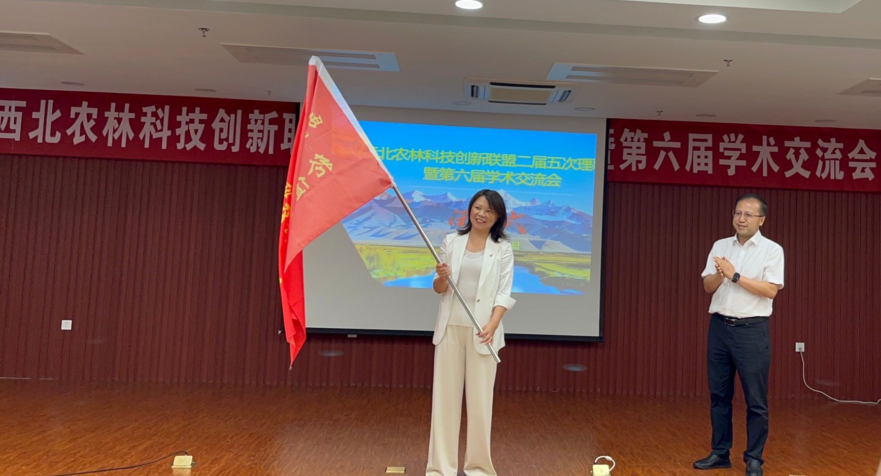 在会议闭幕式上,曹仲华副校长接过了新疆维吾尔自治区畜牧科学院传递的“西北农林科技联盟轮值主席单位”旗帜,并作表态发言,对联盟成员单位对欧博的认可和支持表示感谢,对担任并做好联盟新一届轮值主席单位各项工作充满信心。她指出,联盟立足“一带一路”区位优势,在服务国家和地区发展战略、解决农牧业发展中的共性关键技术难题、推动区域间科研院校协作机制和科技成果的转化应用、促进地方经济发展和农牧民增收等方面都做了大量工作,取得了显著成效。欧博abg官方网站作为新一届轮值主席单位,将认真贯彻落实此次会议精神,加强与各成员单位的沟通、协调、交流、合作,积极探索新时期科技创新工作的新思路和新模式,促进创新资源开放共享,推动科技攻关和成果在西藏转化应用。并将全力以赴筹办好下届理事会,为西北农林科技创新联盟高质量发展作出积极贡献。