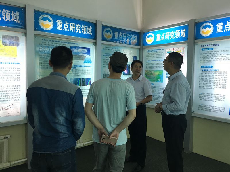 2015年7月22日,由西藏大学农牧学院水利土木工程学院王培清教授带队前往中国科学院西北生态环境资源研究院(筹)(简称西北研究院)访问交流。重点参观了原寒旱所寒区旱区科技创新馆,冻土工程国家重点实验室。冻土工程国家重点实验室主任吴青柏研究员、副主任张明义研究员、科研管理处副处长陈拓等对我们给予了热情接待,双方还举行了座谈会。